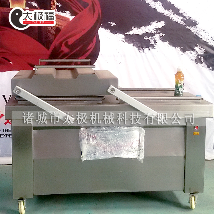 双室真空包装机 双室真空包装机是包装机的一种,利用其真空室对包装进行抽空,然后再充入惰性气体以达到防腐保质的目的。全自动双室真空包装机专为包装含水量大的产品而设计,采用日本控制线路,吸取国外同行业的先进技术经验,其电器方面采用微电脑控制器全程控制,它具有防水、防潮、故障率低、使用寿命长等优点,这些优点使该设备便于清洗,就算用水直接冲洗也不会发生任何电器故障,架体采用国际标准食品用304不锈钢板,强度高,不易破损,它独特的倾斜台面设计,可以保证产品内的水份不流失,从而使产品的含水真空包装更易操作。 中文名双室真空包装机组 成屏触摸、真空系统、温控系统等系 列真空包装机、打包机、捆扎机特 点维修方便,操作简易 组成结构 双双室真空包装机双室真空包装机室真空包装机由彩屏触摸、真空系统、温控系统、冷却系统以及充气系统等装置组成。食品真空包装机的PLC、控制系统、光电开关等电器设备采用世界品牌组件,有日本“OMEON”、台湾“MCN”、法国“TE”等,机械技术设计引进日本技术,设计合理,动作协调,可靠性高,稳定性强,小食品真空包装机价格合理,可编程控制(PLC)、彩屏触摸式操作、伺服电机的操作不仅对保鲜达到了要求,而且能保存较长时间,电子真空包装机通过充入氮气等惰性气体,达到更好防腐、防潮、防氧化变色等保质效果。 产品系列 真空包装机、打包机、捆扎机、封箱机、套袋机、纸箱成形机、装箱机、缠绕机、贴标机、堆码机、及设计各种输送流水线;同时生产和销售打包带、拉伸膜等各种包装材料,产品远销五十多个国家和地区。 公司分别在北京,上海,北京,上海,苏州,厦门,合肥,广州,武汉,青岛,昆明,重庆等地设立分公司。公司利用良好的地缘环境优势,发挥自身雄厚的生产技术能力,秉承"专业、质量、服务、诚信"的经营理念,致力于成品包装机械事业的发展,专注于后道自动化包装流程的规划设计与产品材料的统筹配套工作。 用途及特点 用途及特点:单室真空包装机是一种用于真空包装的小型包装机械。该机具有功能优越,维修方便,操作简易、应用广泛等优点。适用于塑料复合薄腊或塑料铝箔袋、防静电袋等软包装材料。对固体、液体、粉状、糊状的电子产品、线路板,SMT贴片料盘、玩具、茶叶、食品、果品、化工产品、电子元件、精密仪器仪表等进行真空包装。经包装后的产品可防止氧化、霉变、腐败、受潮、振动,可保质保鲜延长产品储存期限。 真空机以塑料复合薄膜或塑料铝箔复合膜为包装材料,对各种仪器药品,粮食.果品.酱菜,果脯,水产品,土特产,化工原料,电子元件及军用品等。可有效的防止脂类品氧化和好氧性细菌繁殖而引起的物品腐败和变质,达到保质,保鲜,保味,保色的功能的储存期限,同时对某些松软的物品,经过真空包装后缩小包装体积,便于运输和储存。 真空 一真空室合盖,真空泵工作,真空室开始抽真空,包装袋内同时真空,真空表指针上升,达到额定真空度(由时间继电器ISJ控制)真空泵停止工作,真空停。在真空工作的同时,二位三通电磁阀IDT工作,热封气室真空,热压架保持原位。 热封 IDT断,外界大气通过其上部进气孔进入热封气室,利用真空室内同热封气室之间的压力差,热封气室充气膨胀,使其上热压架下移,压住袋口;同时热封变压器工作,开始封口;在此同时,时间继电器2SJ工作,数秒后动作,热封结束。 回气 二位二通电磁阀2DT通,大气进入真空室,真空表指针回到零,热压架依靠复位弹簧复位,真空室开盖。 循环 将上真空室移至另一真空室,即进入下一个工作过程,左右两室交替工作,循环往复。 真空包装机的使用和维修 保鲜原理 真空包装的主要作用是除氧,以有利于防止食品变质,其原理也比较简单,因食品霉腐变质主要由微生物的活动造成,而大多数微生物的生存是需要氧气的,而真空包装就是运用这个原理,把包装袋内和食品细胞内的氧气抽掉,使微生物失去“生存的环境”。真空包装不能抑制厌氧菌的繁殖和酶反应引起的食品变质和变色,因此还需与其他辅助方法结合,如冷藏、速冻、脱水、高温杀菌、辐照灭菌、微波杀菌、盐腌制等。 真空除氧除了抑制微生物的生长和繁殖外,另一个重要功能是防止食品氧化,因油脂类食品中含有大量不饱和脂肪酸,受氧的作用而氧化,使食品变味、变质。此外,氧化还使维生素A和维生素C损失,食品色素中的不稳定物质受氧的作用,使颜色变暗。所以,除氧能有效地防止食品变质,保持其色、香、味及营养价值。小型真空包装机只要能达到一定的真空度,也是同样的效果。 真空包装除了除氧以外,还有个充气的环节。真空充气包装的主要作用除真空包装所具备的除氧保质功能外,主要还有抗压、阻气、保鲜等作用,能更有效地使食品长期保持原有的色、香、味、形及营养价值。另外,有许多食品不宜采用真空包装,而必须采用真空充气包装。如松脆易碎食品、易结块食品、易变形走油食品、有尖锐棱角或硬度较高会刺破包装袋的食品等。食品经食品真空包装机真空充气包装后,包装袋内充气压强大于包装袋外大气压强,能有效地防止食品受压破碎变形,并不影响包装袋外观及印刷装潢。 真空充气包装在真空后再充入氮气、二氧化碳、氧气单一气体或2-3种气体的混合气体。其中氮气是惰性气体,起充填作用,