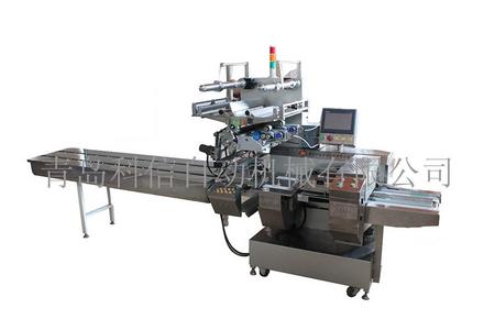 食品包装机价格适用范围 :可以包装各种固体形态的食品,如方便面、雪糕、饼干、月饼、巧克力、威化饼干、蛋黄派、蛋卷、面包、香肠、海苔、冷冻食品等。 主要性能特点: 1、发明:一卷膜在本机上自动分切平移成两条包装膜,同时自动包装两列物品,一台机器两台产能,地面积小,省人又节电。 2、触摸屏控制:操作简单,显示直观,电器模块化设计,数字化控制。 3、驱动方式有三种:双变频、双伺服、三轴伺服。无机械变速箱,运转稳定,可靠噪音小,追踪精度高。 4、物料前后位置调整:自动或点动按钮调整。 5、物料输送宽度调整:一个手柄同时可调两列输送宽度。 6、横封高度可调。 7、两套可调制袋器,可以联动调整其高度和宽度。 8、纵向热封合轮前面有牵引导向轮:牵引导向角度可以在运转时调整,使制袋成型稳定并且可以控制中封宽度节省包装薄膜。 9、横封切器调整方便,固定可靠,可保证长期运行不移位。 可选附加装置: 1、.热熔式日期批号打码机 2、各种自动供料装置 3、包装袋两端折叠装置 4、中封切底边装置及废料收集装置 5、充气装置 6、喷洒酒精装置 7、自动接膜装置 8、热收缩机食品包装机价格