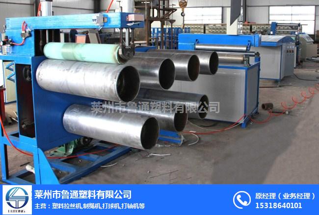 本机组由挤出机(包括冷却水槽),一位牵伸机,热延伸板,二位牵伸机,收卷机等单机组成,其生产工序配套齐全,可连续自动完成从上料到分丝成轴的全部工序。