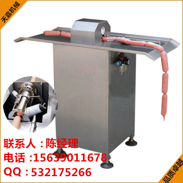 香肠扎线机是根据我国的国情自行研制开发的,该机采用气动传动棉线捆扎,干净、卫生、高效、节能,符合食品的卫生要求。属半自动型,将直径40mm的香肠送入扎线机,靠人工移动香肠,调整定位确定香肠长度的范围(20-400mm)进行扎线。该机适用于生产天然肠衣、胶原蛋白、纤维、烟熏肠衣制作的产品。 香肠扎线机是灌肠制品厂的贴心设备,它具有操作简单,易于掌握,使用方便的特点;生产能力高达:60条/min左右,产品长度随意可调3--25cm不等,只需一个工人即可。可有效的节省肠衣,降低企 业成本,提高利润。成远食品机械厂是从事肉类加工机械开发、设计、制造及销售的企业。多年来企业通过博采众长兼收并蓄,广泛吸收消化国内外先进技术,以精良的加工和检测设备,可靠的制造 质量,严密的质量保证体系和重要的售后服务赢得客户,并在同行业享有盛誉。型号:ZH-01 气压:0.4-0.6MPa 生产能力:60次/min 肠衣范围:直径10-35 外形尺寸:1150*480*750mm