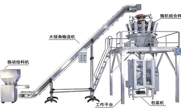 CX-360系列全自动包装机组是广泛运用与食品、添加剂、红枣、茶叶、制药、化工、杂粮、坚果炒货等行业颗粒、条、块状干散物料的自动制袋、计量、充填、封口、打印、成品输出全套流程的全新设备。该机组可选配自动真空部件实现自动真空包装功能。 设备工艺流程: 待包装物料人工投加至振动喂料机料仓--------振动喂料机自动喂料----------Z型物料提升机(受计量秤料仓料位控制)--------自动计量秤按设定重量自动称重---------自动包装机自动制袋(物料自动充填) --------成品输送机--------包装成品自动重量检测--------合格成品输送至人工装箱工位 整套机组技术参数: 包装速度: 30~65包/分 计量范围: 20~500g 制袋尺寸: (50~350)x(80~180)(长L*宽B) 计量精度: ±0.2~0.5% 压缩空气: 0.6Mpa 0.65m3/min 允许大包材外径: Φ400mm 卷材纸芯内径: Φ75mm 机器重量: 800Kg 电源: 7.5Kw 380V±10% 50Hz(整套机组) 外形尺寸:3200x3500x3880(长*宽 *高) 袋型:背封枕式袋、自立袋 机组配置: 标配设备 CX-10电脑组合秤 1台 CX-DT多斗提升机 1台 CX-360立式制袋包装机 1台 CX-CP成品输送机 1台 CX-1000重量选别机 (可选配) 1台 机架平台、护栏扶梯 1套