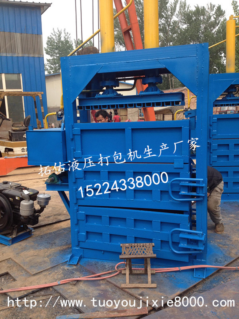 液压打包机用途: 本系列产品广泛应用于废品回收站、包装材料厂家废纸回收打包、电子厂家废料、废纸回收打包、废塑料压缩打包、饮料瓶压缩打包、出口服装打包、废海棉回收打包、药材压缩打包、烤烟压缩打包、油漆桶压缩打包、废金属压缩打包、纺织品压缩打包、无纺布厂家废料回收打包等各种行业厂家废料回收打包处理。提高劳动效率,减轻劳动强度,节约人力,减少运输费用。 注意事项 操作规正确使用机器设备,认真执行维护保养制度和严格遵守安全程是延长机器使用寿命,提高生产效率和保证安全生产的必要条件。为此,建议用户建立维护保养和安全操作规程,操作人员应熟悉机器结构和操作程序外,还必须注意以下各点: (1)加入油箱内的液压油,应严格使用高品质的抗磨液压油,必须经过严格过滤,并且应经常保持足够的油量,不足时应立即加注油液。 (2)油箱每半年应清洗并更换新油一次,但次清洗过滤油液不能超过一个月,使用过一次的新油液经过严格过滤后允许再用一次。 (3)机器各润滑处应按要求,每班至少加注一次润滑油。 (4)应及时清理料箱内的杂物。 (5)未经学习,不了解机器结构、性能和操作规程者不得擅自开动机器。 (6)当机器出现比较严重漏油或在工作中发生异常现象时,应立即停止运行,以分析原因并排除故障,不得强行带病运转。 (7)机器在运转过程中,不得进行修理或接触运动部位,严禁用手或脚在料箱内按压物料。 (8)泵、阀、压力表进行调整时,必须要有经验的技术工人进行,如睛发现压力表有故障,应立即检查或更新表。 (9)用户应根据具体情况自行制订详细的维护保养和安全操作规程 型号可以根据客户要求订做。有30T,40T,60T,80T,100T,120T等等型号。