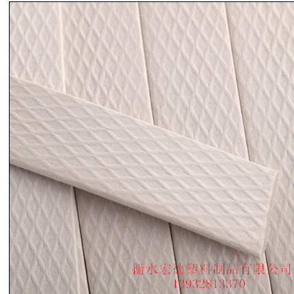 聚丙烯打包带--采用聚丙烯拉丝级树脂为原料,可塑性好,断裂拉力强,耐弯曲疲劳,密度小,拉伸冲击性能佳,使用方便,现已在各领域中广泛作用。 聚丙烯打包带生产过程 主要生产流程:塑料粒融化---压带----成型----冷却-----缠卷----包装--入库 打包带系采用聚丙烯通过加热、熔化、拉伸、冷却生产出的网状结构的包装材料,影响打包带质量的基本参数是拉力、长度、弯曲度、伸长率等。在拉力和其它参数相同的情况下,长度越长成本越低。 聚丙烯打包带捆扎方法 1、 将打包带左端弯曲,插入铁皮打包扣,后将左侧固定杆折入打包带内拉紧。 2、 右手持打包带绕过包装物,将打包带右端弯曲插入打包扣,将左侧固定杆折入打包带内。 3、 左手固定打包扣,右手按住打包带右端用力将打包扣拉紧。 4、 后持剪刀将打包带剪断。