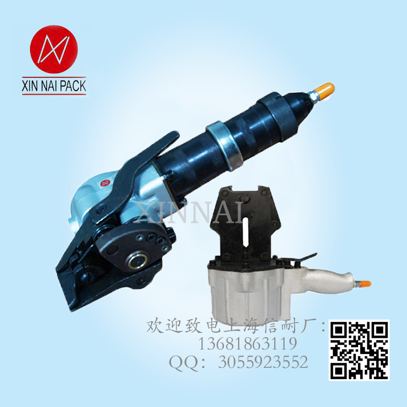产品优势: 1.体积小,使用方便,性价比高。 2.气源操作,束紧力度大,稳定性能好。 3上海信耐KZLS-32G采用铸钢制造而成,抗拉强度高,韧性好,2012信耐全力推荐的产品系列之一。 技术参数: 型号:KZL-32G拉紧机 适合材质:钢带 使用气压:0.4-0.6MPa 机体重量:4.8Kg 空载钢带速度: ≥80mm/s 拉紧力:9.8KN 钢带规格:32*(0.8-1.2)mm 材质:铸钢 型号:KZY-32G锁扣机 适合材质:钢带 使用气压:0.4-0.6MPa 机体重量: 3Kg 夹口承受拉力:16.85KN 钢带规格:32*(0.8-1.2)mm 材质:铸钢