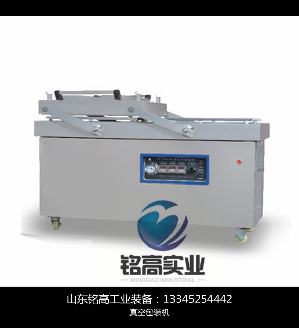 食品真空包装机 食品真空包装机对香肠、肉制品、饼干等食品进行真空包装。经过包装后的食品可以防止霉变,保质、保鲜而延长产品的储存期限,只需按动真空盖可自动完成抽真空、封口。 单室/双室 本设备类型的真空[1] 只须按下真空盖即自动按程序完成抽真空、封口、印字、冷却、排气的过程。经过包装后的产品防止氧化、霉变、虫蛀、受潮、可保质、保鲜而延长产品的储存限期。 单室真空包装机 型号 真空式尺寸 400*400*70mm 500*520*70mm 620*600*70mm 包装能力 3~4r/n 3~4r/h 3~4r/h 封口尺寸 400*10*12mm 500*10*12mm 600*10*12mm 抽气速度 20m3/h 20m3/h 20m3/h 电源电压 220~380v±10% 50hz 220~380v±10% 50hz 220~380v±10% 50hz 功率 0.75kw 0.75kw 0.75kw 机器尺寸 520*490*1000mm 650*570*950mm 800*800*1000MM 机器重量 78kg 86kg 105kg 台式真空包装机 台式单室真空包装机,该机抽真空性能良好,适用于食品行业肉类、酱制品、调味品、果脯、粮食、豆制品、化学制品、药材等颗粒、液体等产品进行抽真空封口包装,适用于多种塑料袋复合袋的真空包装。该机体积小、重量轻、能耗低,适用商店、超市、家庭使用。抽真空、封口、冷却、进气至机盖开启,全过程自动控制。 拉伸膜 全自动拉伸膜真空包装机也称做全自动塑料盒热成型真空包装机。全自动拉伸膜真空包装机的原理是使用成形模具,先把薄膜加热,而后再用成形模具冲成容器的形状,然后将包装物装入成型了的下膜腔中,再进行真空包装。主要由真空系统、抽充气密封系统、热压封合系统、电器控制系统等组成。 连续式 连续式真空包装机也叫滚动式真空包装机,或全自动链式真空包装机。它的工作原理是采用链条传动,自动摆盖,连续输出产品, 整机采用进口PLC可编程逻辑控制器,电脑触摸屏操作,操作系统全密封,全机可用清水冲洗。 外抽式 外抽式真空包装机是把包装物放到真 空室的外侧完成真空包装的设备。外抽式真空包装机主要是为较大的包装物抽真空包装而设计的,与内抽式真空包装机的结构不同,外抽式真空包装机是通过抽气嘴放到被包装物的包装袋内,抽空空气,退出抽气嘴,然后完成封口。 立柜式 立柜式真空包装机整机全部选用304牌号设备专用不锈钢材料,控制部分采用PIC电脑版控制系统。立柜式真空包装机主要用于粉末、细小颗粒、液体或大包装物体的真空包装,真空室容积大,袋口立封形式。可连同产品外包装(如:桶、盒)。直接搁置于真空室内,完成内袋的真空封口。开门式的操作形式,便于重物搁置。该型机可根据特殊尺寸、配置要求定做。 广泛用在饲料、化工、食品、电子等行业 给袋式 休闲小食品如鸡爪、鸭爪、鸭脖、豆干、小鱼仔、鱼块等各类熟食食品就只能采用真空包装、高温杀菌才能投入市场。这类产品的真空包装都是采用人工装料,真空室抽真空,每个操作过程都是间歇式、在各个过程中容易造成成品污染或人、物交叉感染,效率低、用工多、综合成本高等问题,特别是近几年来,人力资源普遍紧张,从而制约了行业的发展,导致小食品产业发展慢。 给袋式自动真空包装机专门用于休闲小食品如鸡爪、鸭爪、鸭脖、豆干、小鱼仔、鱼块等各类熟食食品进行连续自动化真空包装的设备,能够自动实现取袋、上袋、打码、撑袋、鼓袋、上料、计量、充填、抽真空、封口、输送等直至成品的全自动化生产,大幅提高生产效率。 真空充氮 真空充氮包装将食品装入包装袋,抽出包装袋内的空气达到预定的真空度后,再充入氮,二氧化碳,氧等气体,然后完成封口工序。 真空充氮包装机是采用国际先进包装技术,集制氮气,抽真空、充氮气,热封为一体的半自动多功能包装机械,工作程序由PLC编程系统自动控制,超大液晶触摸屏操作界面,可根据不同的包装材料和容积单独调节各工作环节时间,也可单独使用其中某一单独环节。整机由除油除水空气过滤系统,空气分离制氮系统,抽真空系统,储气供气系统,热封系统,PLC编程控制系统,升降式工作室及机架、机壳组成。本机可与其它设备及生产机配套使用。 适用范围 适用于各种塑料复合膜和塑料铝箔复合膜的各种包装,对液体、半流体、固体粒状、粉状、糊状的食品、鲜果、蔬菜、大米、鲜花、化学药品、贵重药材、名贵字画、电子原器件以及各种防蛀、防腐、防潮、防霉变、防氧化物品进行真空包装或真空充氮包装,使其延长保质期。 产品特点 1、外形美观、大方,能直观到其真实形态。抽真空包装外形折破,不易查看其包装产品的真实形态,包装档次不高。 2、真空充氮包装,内外压差平衡(-600~-700mmHg)空气将无法通过包装袋微孔逐渐向包装袋内渗入,防止保鲜产品过早腐败,变质。 3、真空充氮包装,适合易碎,怕挤压物料包装(如鲜花、脆片、休闲食品等),抽真空包装无法实现。 4、一些含水份的食品或物料,在抽真空包装后由于袋内压差作用,食品或物料的油份及水份渗出,将影响食品或物料的内在质量及表面美观。 5、一些油炸食品或果蔬脆片,采用真空充氮包装,可有效防止食品酸败或挤压,延长储存时间 特点如下 编辑 1、排除了包装容器中的部分空气(氧气),能有效地防止食品腐败变质。 真空包装机 2、采用阻隔性(气密性)优良的包装材料及严格的密封技术和要求,能有效防止包装内容物质的交换,即可避免食品减重、失味,又可防止二次污染。 3、真空包装容器内部气