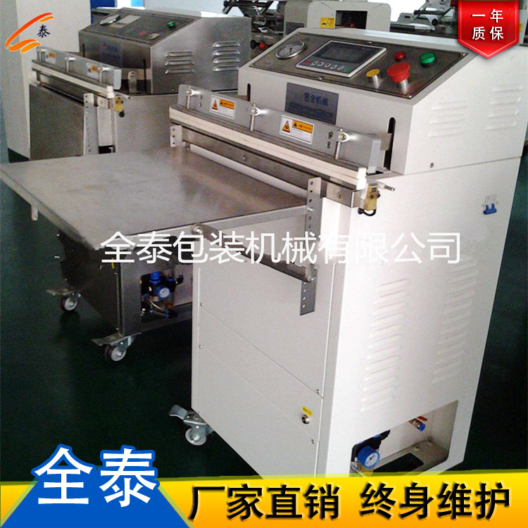 全泰机械DZ-1000型全自动真空包装机 价 格:¥48000 供应总量:1000 台 发货期限:面议 订购信息: 起订量 (台):≥1 价格:¥48000 采购量:1000 台可售 立即询价 基本参数: 真空室尺寸:1125*475*105mm 功效:240-320次/小时 抽气速率:30L/S 低压强:小于200pa 电源:380v/50hz 平均电耗:4.8kw 外形尺寸:1800*1435*1350mm 热封条数:2*5 整机重量:580kg 品牌:全泰 详细说明: DZ-1100R全自动真空包装机 (注:可增加充气功能) 深度 包装袋长度 封口座长度 DZ1100R 73mm 455mm 1150mm DZ1100D 73mm 355mm 1150mm DZ1000B 70mm 350mm 1050mm 主要技术参数:(mm) 型号 真空室尺寸 包装能力 封口尺寸 外形尺寸 电源 重量 DZ-1100R 1240×540×93 1.1m×(2-4)次/分 1100×(8-12)mm 1690×1710×1325 380V/50Hz(3-6Kw) 680kg DZ-1100D 1240×430×90 1.1m×(2-4)次/分 1100×(8-10)mm 1420×1710×1325 380V/50Hz(3-6Kw) 580kg DZ-1000B 1120×430×90 1m×(2-3)次/分 1000×(8-10)mm 1350×1740×1100 380V/50Hz(3Kw) 500kg 用途: 适用于各种塑料薄膜袋、复合膜袋、铝箔袋的真空包装。对各种肉制品、禽产品、酱菜制品、海产品、大蒜制品、山野菜、粮食、医药、生物制品、电子元件等各种固体、粉状物、半流体进行真空包装,达到隔氧保鲜延长产品的保质期,提高产品档次。 配置特点: DZ1100系列:工作室垂直升降、采用进口ABS刹车控制,工作平稳,定位准确;进口履带、双节距链条、进口电器控制,水冷加热,稳定可靠;可选配进口真空泵,真空效果好,寿命长; DZ1000系列:锥形刹车电机,国产传送带,可配置进口电器,进口真空泵,经济实惠。 工作过程: 放入包装物 → 真空脱气 → 电热封口 → 放气 → 工作室上升 → 送出成品 厂家郑州市全泰包装机械厂为您提供全泰机械 DZ-1000型全自动真空包装机械的详细产品价格、产品图片等产品介绍信息,您可以直接联系厂家获取方圆机械 DZ-1000型全自动真空包装机械的具体资料。
