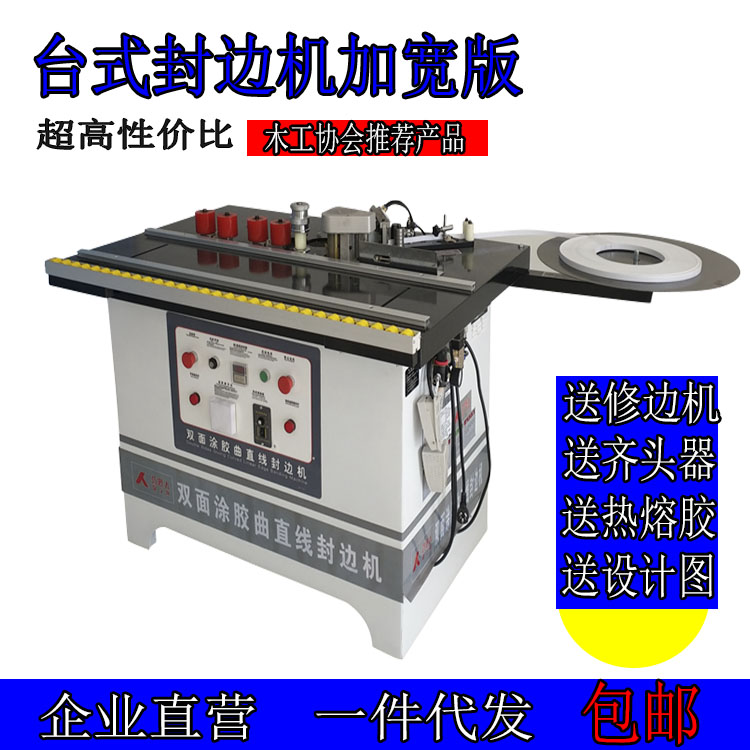 产品特点: 1,自切带封边机双面涂胶系统,在封边条和板材上均匀的涂上封边条,黏贴更加牢固,冷却之后撕扯不下。 2,自动/定时/即时断带三大功能,封直线板材可通过行程开关自动送/断带功能,便捷操作。批量封同尺寸板材,可使用策电脑设定定时断带功能,提高效率。自切带封边机封异性板材,可使用脚踩开关即时控制送断带,精准控制。 3,温度调节仪:高性能温度调节仪,温度显示直观、精准,调节操作简便,拆卸简单,抗干扰能力极强 4,电机调速器:无极电子调速,调速平滑,可按实际需求调节 5,PVC压轮:采用PVC压轮,耐磨耐高温,防止刮擦。