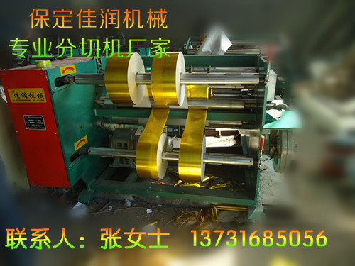 河北金银纸分切机~雄县元宝纸分条机~塑料分切机复卷机厂家 佳润机械生产的分切机(无纺布分条机、胶带分条机、薄膜分切机、皮革分条机、高速分条机、)主要适用于无纺布、薄膜、PVC、皮革、塑料、塑胶、胶带、胶纸、牛皮纸、烟酒包装印刷材料及其它含塑料和橡胶材料的裁切并自动收卷。 分条机主要采用多刀上下刀架分切设计,电磁调速系统,收卷轴采用弹压式设计。 分条机主要采用装卸材料非常轻便快捷,稍为指点员工即可操作。 分条机方式滚刀,收卷主要采用表面卷取(可选带中心驱动力),分切机配置舒展辊,消除起皱现象。 分条机放卷主要采用磁粉制动器;分切机变频调速,配三段计数器,自动换卷停止及计长。 机器配置: 控制系统 控制按钮集中安装,操作灵活、方便。 放卷部分 1、自动纠偏放卷机构,配恒张力系统。 2、机械放卷架放卷,电磁制动器控制张力,无纠偏。 放卷张力控制 放卷张力采用磁粉制动器控制,可手动调节。 分条部分 圆刀主动分切。 配备滚轮式计米器,方便计算收卷长度。 收卷部分 双滑差轴收卷,针对无纺布材质特点设计,因无纺布有弹性,并且不像薄膜一样厚薄均匀,采用普通的气涨轴收卷,在分切宽条时效果差别不大,但分切窄条时就会造成有些卷比较松,有些卷比较紧,结果就是收卷不整齐。使用滑差轴收卷,能够让纸管在轴上有一定的滑差,保证每一卷的松紧度都相同,能在分切窄条时也能达到良好的收卷整齐度。 收卷张力控制 收卷张力采用磁粉离合器控制,依实际外径计算张力,使张力控制更加精准稳定、操作更加简便。上下收卷张力分别控制。 废边处理 配备风机和废边吹管,可将材料废边自动吹出。