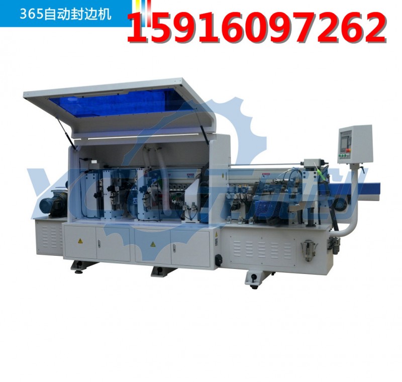 型号:FBJ-365 送给速度:12-20m/min 板料厚度:10-60mm(电动升降) 封边带厚度:0.4-3mm 板料宽度:≧80mm 工作气压:0.6mpa 总功率:8kw 整机重量:1800KG 外形尺寸:4000*1000*1600MM 封边程序:1、涂胶贴边 2、前后齐头 3、精修 4、刮边 5 抛光 封边作业是板式家具制造过程中的一道重要工序.封边质量的好坏直接影响产品的质量、价格和档次.通过封边,可以很好地改善家具的外观质量,避免家具在运输和使用过程中边角部损坏、贴面层被掀起或剥落,同时可起到防水、封闭有害气体的释放和减少变形等作用,而且还能美化家具、愉悦心情.板式家具生产企业使用的原料主要是刨花板、中密度板及其它人造板,所选用的封边条主要有PVC、聚脂、三聚氰胺和木条等.不同材料和规格的封边条使用不同的封边设备.安装、调试好一台全自动直线封边机,是使其长期保持稳定工作状态和完成高质量封边作业的重要保证。 佛山市元成创机械有限公司专业木工机械研发十二年,专业研制生产板式多片锯、45度切角机、双头烙花机、木方多片锯、多头钻孔机、木板开条机、木线刨花机、自动封边机、精密裁板锯、方木断料机......各类机械订造设计