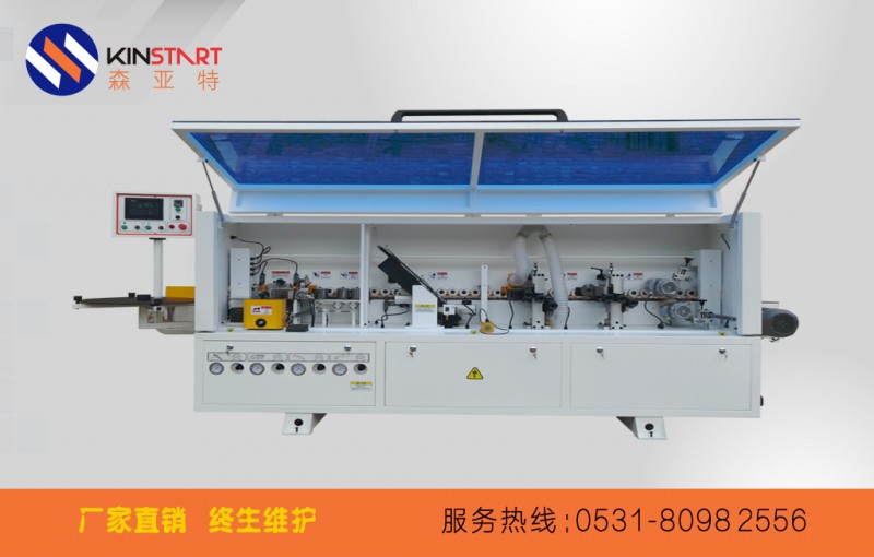 四轴开料机: 目前四工序数控开料机在市场上占据很大比重,尤其是新建的板式家具厂,很多客户都把四工序开料机当作可以选择]的机型。原因是因为不想投资很大,而且四工序数控开料机既可以做门板又可以做柜体。 (1)四工序数控开料机具备四个加工主轴分别安装四把不同的刀具,可不连断进行开料、打孔、拉槽、雕刻等工作,先进的自动换刀程序,无需人干预,程序自动执行; (2)采用侧挂式,法兰滑块设计结构,运行平稳,导轨采用分段式结构,更换无需专业人员,更方便; (3)成熟数控系统,性能更加稳定; (4)整体床身采用钢管无缝焊接技术,并经过回火或震动时效处理,床身更加坚固耐用; (5)采用四方向、六动作板材自动定位系统,板材定位快速精确; (6)配有辅助上料及除尘装置,可保证各环节和部位的颗粒废料得到有效的清理和收集;四工序数控开料机的研发过程,结合了众多家具机械的成功经验,从而能够更好的成为家具行业制造的得力助手。 全自动双修封边机: 本机适用于实木板、纤维板、刨花板等板材工件的直线封边,封边材料可用实木条、PVC、三聚氰氨、薄木皮等。 采用原装进口电机及进口优质电气元件。 产品系列化,客户选择多元化。 高精度、高效率。 涂胶封边部分采用下置式热溶胶锅,合理的送胶结构,保证了送胶方便,涂胶均匀,封边牢固。 齐头部分用来修正板材前后端多余的封边材料,采用变频高速电机和靠模跟踪结构,保证切断面平滑整齐。 粗修部分用于修去加工板材封边带上下部分多余的封边材料,采用变频高速电机和靠模跟踪结构,保证修便板材上下部分的平滑整齐。 精修部分采用变频高速电机和靠模跟踪结构,保证修边材料上下部分圆弧的平滑整齐,美观光洁。 刮边部分是为了修整由于修边非直线运动的切割方式而引起的波纹痕迹,使板材上下部分更加光滑整洁