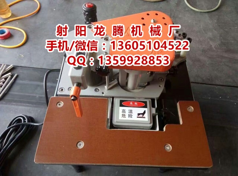 江苏盐城市龙腾便携式小型封边机FC1001S手提式双涂胶封边机 FC1001S小型手提式封边机注意事项: 1.必须使用安装有效地接线的三孔插座。 2.使用中保持双手干燥,确认穿着绝缘性手部及足部护具,清洁时,必须拔掉电源插头。 3.请勿将本机易热部件贴近皮肤,以防过热烫伤。 4.使用中小心不要将衣物及身体任何部位接近转动部件,防止造成不可逆伤害。 5.保证胶锅内清洁,不得有杂质进入其中,防止损伤绞龙。 6.当接通电源后,如发现异常现象,应立即关闭电源,拔掉插头,由专业人员检查维修。 使 用 时 请 远 离 水 源 禁止使用180℃以上的热熔胶,建议温度:(130℃-150℃) 具体参数如下: 产品型号:FC1001S 封边速度:2-6m/分钟 额定电压:220v 封边厚度:10-50mm 额定功率:750v 胶水容量:600ml 外形尺寸:300*290*340mm 加热时间:5min-10min 机器净重:9.0kg 连续工作时间:≤10h