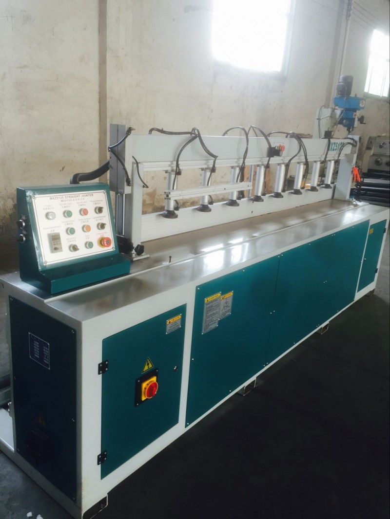 木工直线修边机详细说明 适应范围与技术参数:本机床主要适用于红木,实木小板拼板专用;另外适用做门,橱柜,修边,拉槽,操作安全,适用方便,效率高。工作台行程:2300MM,主轴直径:30MM,主轴转速约:9000转/分,铜线电机,电机功率:5.1KW.电源:380V,质量保证,诚信经营! 木工直线修边机调整:1、将被修边之材料放在工作台上,靠紧导板,使之平衡运动与修边导轻轻接触,2、转动修边压紧装置所示,将修边压料轮靠在材料面上3、调整修边刀的旋转方向,使之顺时针转动然后将板材由右向左运动一次修抛完成4、注意修边量、修边机部分名称:板材厚度调整,抛光轮,齐边锯片,齐边辅助台面,台面支撑,电源开管,修边台面,修边靠尺,修边刀。