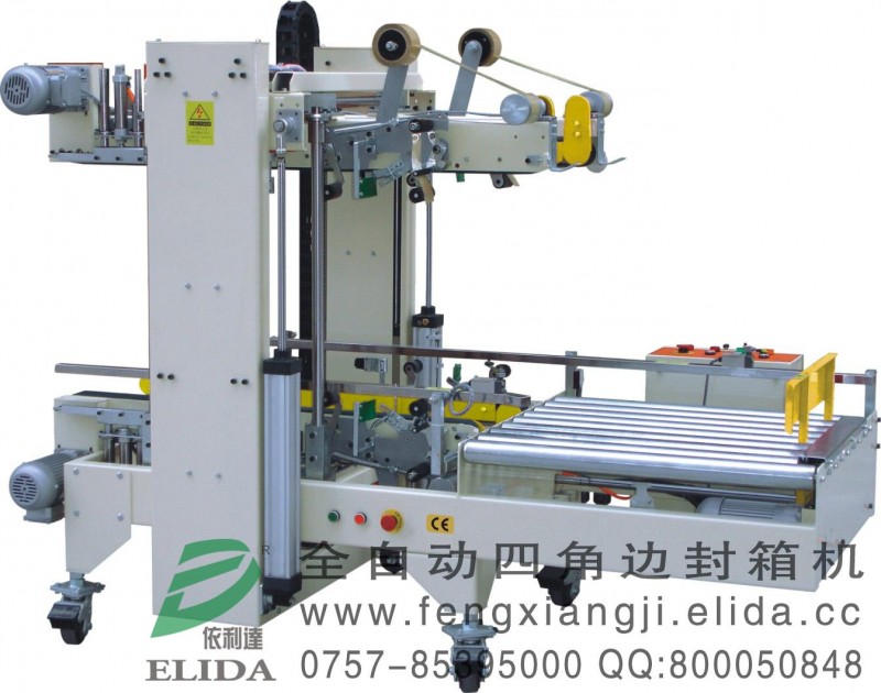 顺德纸箱封口机全自动封箱机不用人手看管 温女士 依利达ELD-09C顺德纸箱封口机全自动封箱机|广州东莞四角边封箱机|深圳惠州角边式封箱机|中山珠海气动纸箱封箱机|平洲胶带封箱机|纸箱打包机: 依利达纸箱封口机技术参数: 电源:220V 50HZ; 使用气源:5-6KG/平方; 大包装尺寸:L500*W500*H500mm; 小包装尺寸:L320*W200*H180mm; 输送速度:400ctns/hr; 使用胶带:OPP封箱胶带、封箱纸、封箱胶纸; 胶带宽度:2"、2.5"、3"; 外包装尺寸:L2000*W1200*H1500mm; 机器重量:500KG。 依利达纸箱封口机全自动封箱机:操作简单、使用方便、容易调整、封箱速度快、效率高、坚固耐用,适合配套依利达自动化后道包装流水线全天候大量使用。采用特殊设计,胶带粘贴,抚平,整齐美观。用印字胶带,更可提高新产品形象。 依利达纸箱封口机广泛应用在家用电器、纺织、食品、百货等行业。可与依利达全自动封箱机(一字型纸箱胶带封箱机)配套使用,完成“工”字型封箱。