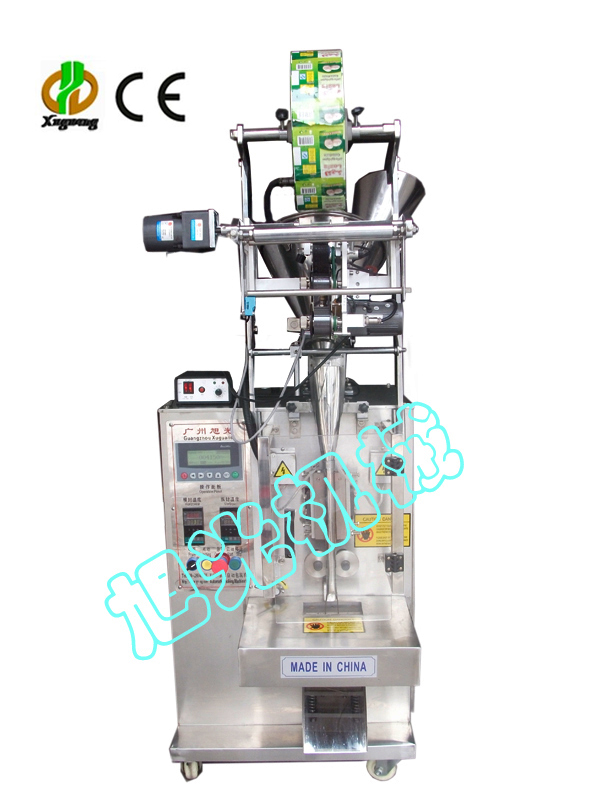 背封粉末包装机介绍 自动完成计量、制袋、充填、封合、打印批号(配打码机)、切断及计数等全部工作;自动完成粉末类物料的包装。 自动背封粉末包装机主要用于包装如下产品或类似产品: 奶粉、豆粉、调味粉、咖啡粉、咖啡粉、玉米粉、超细粉末及流动性不佳的粉剂等 背封粉末包装机特点: 1.用进口PLC智能控制机器的各功能状态。包括:任意设置袋长、累计生产数量、显示生产数量、设置总产量停机、光电可任意转换开或关等是一款新型智能化较高的自动包装机。 2.智能型温控仪双路控制横、纵封体温度。 3.智能光电定位,亮动、暗动任意转换,抗干扰强,连续三袋光标异常即停机报警。 4.在额定范围内无级调整包装速度,无需停机调速。 5.制袋精度高。操作维护方便。 6.采用精密型螺杆计量,对于密度均匀的被包装物料计量准确,符合国家计量标准。 背封粉末包装机参数 计量方式 螺杆式 袋子类型 背封式/长条状 剂量范围 1- 100ml(更换螺杆) 制袋尺寸 袋长30-160mm 宽20-100mm 包装速度 30-70包/分钟 控制方式 台达PLC控制系统+中英文显示屏 机箱外观 304#不锈钢材质 功率 1200W 电源 220V/380V -50Hz/60HZ 重量 250KG 外型尺寸 长650mm 宽700mm 高1900mm 包装材料 纸/聚乙烯;玻璃纸/聚乙烯;铝箔/聚乙烯;BOPP/聚乙烯;尼龙/CPP等。 功能概述 DXD系列包装机,可自动完成计量、制袋、充填、封合、切断、打印生产日期、 切易撕口等工序。 切口 锯齿切断/平切/锯齿连袋/一字连袋等