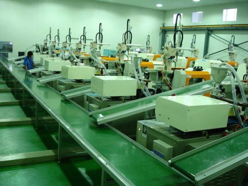 一、主线配置如下: 1.动力采用3HP成邦连体马达,配 1:60牙箱,3HP爱得利变频器,速度:1-5米/分钟. 2.机身采用40×60铝型材(1.5毫米),机脚采用40×40铝型材(2.0毫米),跨度按注塑机实际尺寸制造 3.皮带采用2毫米绿色 PVC防静电皮带,宽800毫米,无缝接口,皮带下承托采用直径38毫米镀锌滚筒,间距:200毫米.下层承托滚筒间距:1.0米. 二、机械手旁边小型流水线配置如下: 1.动力采用120W马达,配 1:60牙箱,电子调速器,速度:1-5米/分钟. 2.机身采用40×60铝型材(1.5毫米),机脚采用40×40铝型材. 3.皮带采用5毫米绿色 PVC防滑皮带,宽400毫米,无缝接口,皮带下承托采用1毫米镀锌托板,一米各一件. 4.机脚配脚轮. 三、整机保修一年,24小时内上门维修,不耽误贵司生产安排。 四、实际要求可根据贵司实际注塑机尺寸及要求来设计和订做。 五、如有意向请电话:艾生,QQ:1965468080 六、如需更详细介绍可进入我公司网站参考其他产品或产品视频介绍 七、公司网站:www.jcjxsb.cn 八、我司在阿里巴巴网站(会员7年)做实地认证及产品视频录像。 九、欢迎到我司来参观。