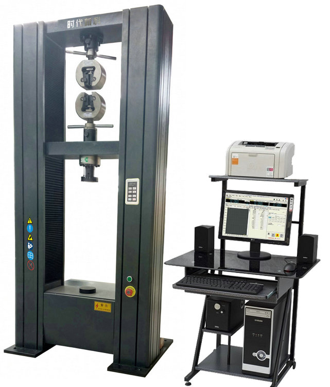 什么是 机械性能试验 测量材料在力或能的作用下缩表现的特性,如强度、刚度、塑性、韧性、硬度等。有时要求在某些特定环境,例如高温、低温、腐蚀、等条件下进行试验。由于工程结构和机器零部件绝大部分是在受力的情况下工作的,机械性能是他们的主要性能。因而这类试验应用***广。 WDW-50E微机控制电子万能试验机是专门针对高等院校、科研院所而设计的新一代微机控制电子万能试验机。计算机系统通过全数字控制器,经调速系统控制伺服电机转动,经减速系统减速后通过精密滚珠丝杠副带动移动横梁上升、下降,完成试样的拉伸、压缩、弯曲、剪切等多种力学性能试验,另外配置种类繁多的试验附具,在金属、非金属、复合材料及制品的力学性能试验方面,具有非常广阔的应用前景。 主要技术指标: 1. 试验力:50kN 2. 试验力测量范围:0.4%--100%。 3. 试验力示值精度:优于示值±1% 4. 试验力分辨力:1/300000(全程不分档) 5. 横梁位移测量精度:分辨率高于0.0025mm 6. 变形测量精度:±0.5%(在0.2—10mm范围内) 7. 试验速度范围:0.01—500mm/min,无级调速 8. 试验空间:A..压缩空间:700mm B有效宽度:480mm 9. 整机电源:三相,220V±10%,50Hz,功率:1kW 10. 工作环境:室温—35℃,相对湿度不超过80% 11. 主机尺寸约:800×600×1900mm 符合标准: GB/T16865-2013 变形铝、镁及其合金加工制品拉伸试验用试样及方法 GB/T22315-2008 金属材料弹性模量和泊松比试验方法 GB/T228.1-2010 金属材料拉伸试验部分:室温试验方法 GB/T3250-2007 铝及铝合金铆钉线与铆钉剪切试验方法及铆钉线铆接试验方法 GB/T-3251-2006 铝及铝合金管材压缩试验方法 我公司主机支撑部分由四根光杠两根进口高精密滚珠丝杠组成,目前市面上便宜的设备有些是用两根光杠,会导致设备的整体刚度出现很大误差,而且也容易导致安全问题。温馨提示您再采购设备时货比三家。我公司设备质保三年,终身保修。 拉伸试验钳口座采用高强度钢制作而成,表面镀铬,既美观又保证了钳口座的同轴性。拉伸钳口标配一副平钳口(用于对板材及细小的线材进行拉伸试验),一副圆钳口(主要用于棒材及线材的拉伸)。钳口通过热处理,硬度达56HRC。 配有无线手控盒,可对设备进行空间调整,以及简单的试验。 试验数据测控系统符合GB228-02、GB228-2010等三十多个国家标准有关规定, 同时可根据GB、ISO、JIS、ASTM、DIN及用户提供多种标准进行试验和数据处理,并且具有良好的扩展性。对试验过程中的试验力、位移、曲线等多种参数可实现实时显示; 可根据用户需要选择负荷~时间、负荷~位移、位移~时间等曲线来进行试验及数据显示、存储、分析及打印,可以同时观察多个试验曲线,并可通过多个曲线的叠加、局部放大来实现待分析样品特性的比对。