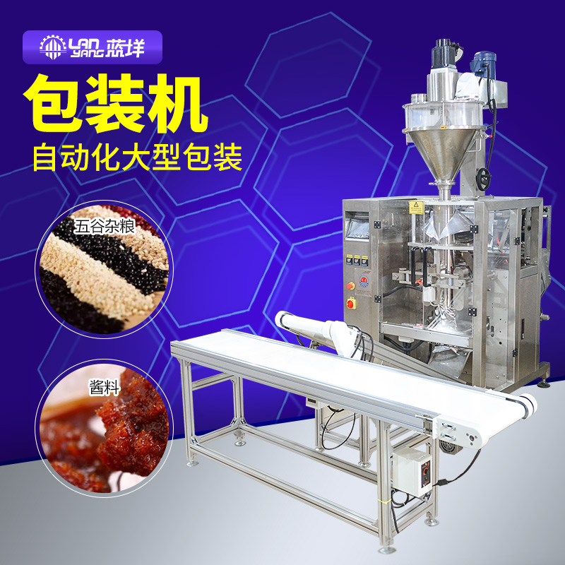 包装200-1000g的粉剂大型包装机有ZK-420主机及螺杆计量装置组成,确保设备精确、高效率的达到客户的包装生产要求。 ? 主要介绍: ? 低投入,高回报,速度快,效率高 ? 进口PLC全电脑控制系统,人机界面,超大显示触摸屏操作简便 ? 伺服运膜系统,横封气动控制,定位准确,整机性能卓越 ? 大限度的提高了整机的可靠性和智能化程度 ? 本机与计量装置配套即可自动完成送料、制袋、充填、制袋、日期打印,充气(排气),计数、成品输出的全过程。