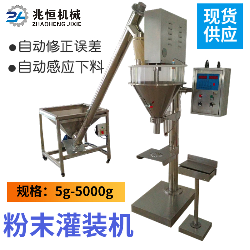 粉末灌装机设备简介: 该机适用于化工包装、食品包装、副产品包装等行业的粉状包装、小颗粒状物料的定量包装,如:面粉奶粉包装、农药包装、兽药包装、消毒剂包装、洗衣粉包装、粮食包装、种子包装、调味品包装、味精包装、食盐包装、白糖包装、添加剂包装等. 粉末灌装机设备特点:?? 1.微电脑计量、定量准确.参数可调整、误差可自动修正. 2.滚动轴承取代滑动轴承、磨损小.强弱电分开,无干扰.可靠性高,适用面广. 3.充填部件加工精度高、互换性好,分级合理: 4.模块式设计,组合灵活.可根据需要选配自动供料装置,套袋装置和防漏装置. 粉末灌装机设备配置及性能: 1.???包装速度:步进电机方式7~25袋/分钟(填充速度:15~45袋每分钟) 2.???包装精度:步进电机方式±0.5% 3.???功率:步进电机方式1.95kw 4.???电源:380v三相四线 5.???机器重量:步进电机方式175kg 6.???通过国家特种计量器具生产许可、ISO-90001、CE、GMP、QS、3C认证。 7.???材质可根据客户需要定做306、321和316L 8.????红外传感,步进电机带动螺杆旋转下料,更节能省电. 9、粉末灌装机设备技术参数: 称重能力:15~45包/min???????? 称重范围:0.05-5kg/包 称重误差:±0.5%????????? ????? 控制方法:单片机微机控制 供??? 电:AC380V???????? ???? 主机功率:步进电机方式0.95kw 扭矩:步进电机方式12N/M 速度:步进电机方式1000转/分钟 驱动功率:步进电机方式0.35kw 搅拌电机功率:0.55kw 外形长宽高:850*850*1950 设备运行条件:运转时间:8000小时/年???? ??环境温度~10—40℃ 螺旋上料机简介: ? ? ?该产品主要用做粉粒料上料,适用于食品、化工、建材、塑料以及包装等行业有一定高度要求的设备喂料。 1、振动螺旋上料机能够提升多种粉粒物料,料箱与绞龙均为不锈钢制成; 2、上料电机、振动电机各自开关控制振动幅度可调,整条螺旋可以方便拆装、清洗; 3、自动加料、自动停止; 4、螺旋及料桶与料仓之间软连接,拆卸轻松;料筒下端有活门及正反转开关,清洗方便; 5、料仓加配振动电机,使物料自动进入螺旋。 ? 螺旋上料机技术参数: ?提升量 ?1-4t/h ?料箱容积 ?100-300kg ?螺杆直径 ?110 mm ?料管直径 ?115 mm ?上料高度 ?1650 mm-3300 mm(可按要求定做) ?电压功率 ?AC380v??1.1-4.4kw (根据主机的包装量而定) ?料仓尺寸 ?860×755×840 mm ?重量 ?150kg 郑州兆恒机械一直致力于粉剂灌装机的研发和生产,一直以质量,用户至上的方针,坚持科学创新,提供优质的产品,真诚为客户服务。