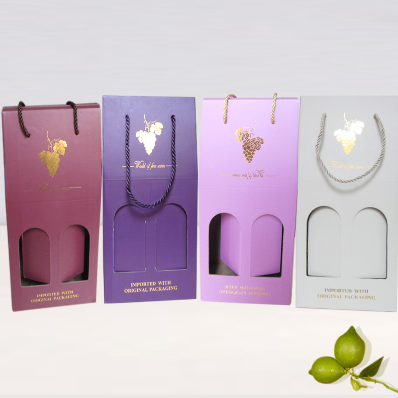 款号:手提双支酒盒-坑盒(现货) 尺寸:18*9*38cm 颜色:米白色,紫色,粉红色,酒红色 现货出货时间:下单2天内 使用材料:瓦楞纸(双铜) 涤绳 使用工艺:印刷,覆膜 使用机器:印刷机,覆膜机,碑机 日生产量:27000pcs 生产周期:7-15天 折叠纸盒 使用范围:酒盒