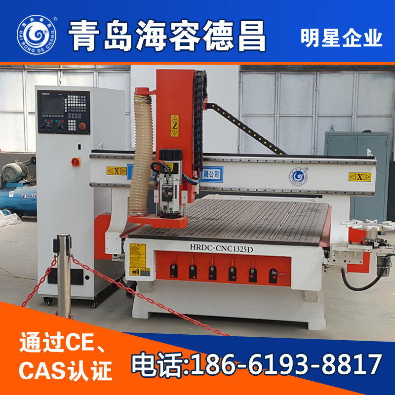 适应于家具厨具门板加工,橱窗,板式家具,以及各类木制品 可用于大面积、大产量的密度板、实木板的平面雕刻、镂空、切割、3D浮雕。 机型特点: 1.斗笠式自动换刀系统,刀库容量8把 2.创新的设计以及高精度的制造,高强度的刚性结构,工作台人性化的操作,超大加工区间及提高产能的解决方案。 3.对多个木工的开凿,花边切割等工序一次完成,降低加工难度,极大提高了加工效率。 4.设计更合理,采用先进的Y轴双齿传动,速度快,力量大。