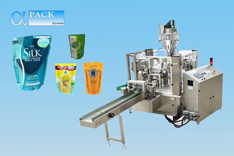 应用: 粉剂: 小麦粉、汤料(螺杆称量充填装置); 颗粒: 砂糖、种子(量杯容积充填装置); 液体: 清洁剂、洗发水、漂洗剂、饮料(活塞泵或螺旋泵); 膏体: 软罐头食品(特殊螺旋泵或回转泵)。 技术特点: 1、间歇式8工位旋转机,专为平面袋和自立袋(拉链式或无拉链式)包装设计; 2、触摸屏操作,简单方便; 3、出错信息直观显示; 4、符合卫生标准,清洗方便; 5、所有的机器零件均,品质高,寿命长,耐用; 6、多种充填装置可供选择:螺杆称量充填装置,量杯充填装置,液体充填装置, 膏体充填装置以及其他特殊产品的充填装置;可与其他外部配套设备进行简单组合。 工作程序: 1、给袋; 2、打码、开拉链(选项); 3、开自立袋; 4、上开袋; 5、一次充填; 6、二次充填(选项); 7、热封口; 8、冷却/输出。 选项: 1、开拉链袋装置; 2、2次充填工位; 3、带安全开关的防护门; 4、生产日期打码机(色带打印、热封压印或喷码); 5、振实装置。 标准配置: 1、给袋输送机; 2、带检测装置的开袋器; 3、数显温控器; 4、全不锈钢机身; 5、彩色触摸屏; 6、输出皮带。 型号 AP-8BT(IV) AP-8BT(IV) XL 袋子尺寸 长 100-350 mm 200-500 mm 宽 110-240 mm 150-300 mm 生产速度 20-45 ppm 15-35ppm 适用袋质 复合膜 适用袋型 平面袋,自立袋,拉链袋,滑动拉链袋,折摺式袋子 夹手宽度调节 触摸屏自动调节 安全性能 无袋-不充填-不封口 袋子无法打开或打开不完整-不充填-不封口 加热装置故障报警 机器在低於设定气压下自动停机 机器在防护罩未关闭或电箱门未关闭时自动停机 防护门 未打开的袋子可循环使用 功率 220V, 1 phase, 50/60Hz, 3.8kw 气源 500N liter/min, 6kg/ cm2