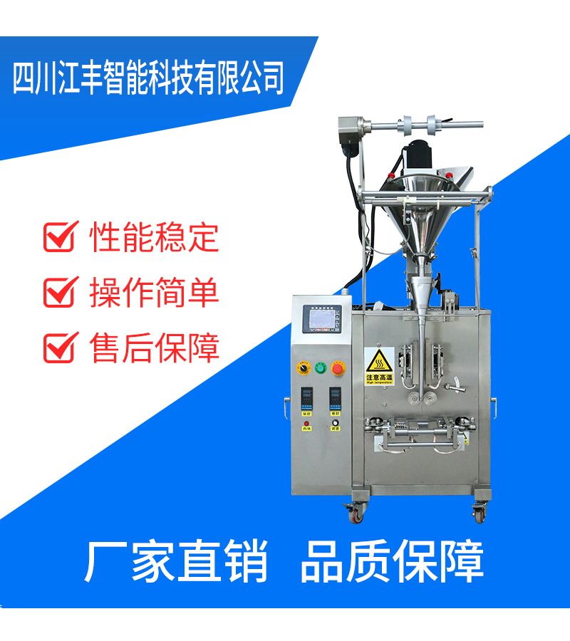 粉剂包装机(斜螺杆)参数与用途: 用途: 食品、化工、医药和调味品等粉状物料,如奶粉、豆奶粉、麦片、爽身粉及各中医药、农药粉末等; 功能: 斜螺杆下料,封口为三边封 PLC控制系统,光电跟踪自动对色 人机界面设定,故障自检及急停保护 自动完成计量、制袋、充填、封合、分切及计数等周期作业 计数参数: 型号 320 制袋尺寸 Length:50-200mm Width:20-140mm 包装速度 35-90bags/min 计量范围 20-200g 包装膜大宽度 320mm 包装膜厚度 0.03-0.1mm 功率 1.5kw 电压 220V/50Hz 机重 260kg 外形尺寸 650×900×1650mm