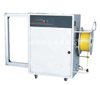 HY-315侧边型全自动无人化 电源,功率: 3P,380V,50/60Hz,750W,5A 打包速度: ≤2.5秒/道 台面高度: 可根据需要定 框架尺寸: 可根据需要定 烫粘部位: 侧面 捆扎形式: 平行1 ~多道,方式光电控制,手动等 适用包带: 厚(0.55~1.2)mm*宽(9~15)mm(实际按用户定制) 电器配置: “OMRON”“PLC”控制、法国“TE”、以及光电开关控制,精确无误 机器重量:330kg