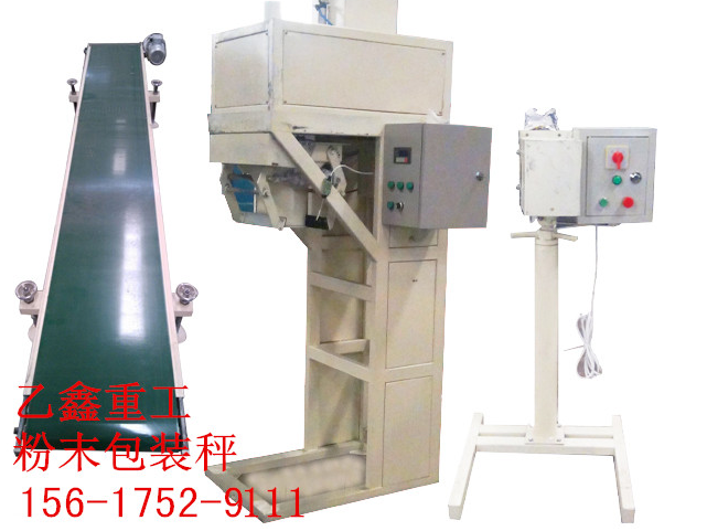 咨询电话:156-1752-9111 更多有机肥生产设备了解www.fhfzlj.com 有机肥粉末状包装机应用于工农业自动化生产自动定量包装,整个称量过程由电脑控制,自动完成。具有称量速度快;称量精度高,省力,省人,操作简单,维护方便的特点。当定量包装秤进入自动运行状态后,称重控制系统打开给料门开始加料,该给料装置为快、慢两级给料方式;当物料重量达到快给料设定值时,停止快给料,保持慢给料;当物料重量达到终设定值时,关闭给料门,完成动态称重过程;此时系统检测夹袋装置是否处于预定状态,当包装袋已夹紧后,系统发出控制信号打开称量斗卸料门,物料进入包装袋中,物料放完后自动关闭称量斗的卸料门;卸空物料后松开夹袋装置,包装袋自动落下;包装袋落下后进行缝包并输送到下一工位。如此循环往复自动运行。 粉末自动包装机由称重单元、小车、缝包输送装置、气动系统、除尘系统,定量包装控制仪表等组成。其中影响打包速度和准确度的关键部件是称重单元,它包括储料仓、闸门、截料装置、秤体、夹袋装置、支架、电气控制装置等。储料仓为缓冲式料仓,用于物料储备并提供一个接近均匀的物料流;闸门位于储料仓底部,当设备检修或出现故障时,用于将物料封阻在储料仓内;截料装置由截料斗、截料门、气动元件、补气门等组成,在称重过程中提供快、慢两级给料,其快、慢给料的物料流均可单独进行调整,从而保证定量包装秤满足计量的准确度要求和速度要求;补气门的作用为平衡称重时系统内的空气压差;秤体主要由称量斗、承重支架和称重传感器组成,完成重量到电信号的转变并传输给控制单元;夹袋装置主要由夹袋机构、气动元件等组成,作用为夹紧包装袋,让称重完毕的物料全部落入包装袋;电气控制装置由称重显示控制器、电气元器件、控制柜组成,作用为控制系统工作,使整个系统按预先设定的程序,有序工作。