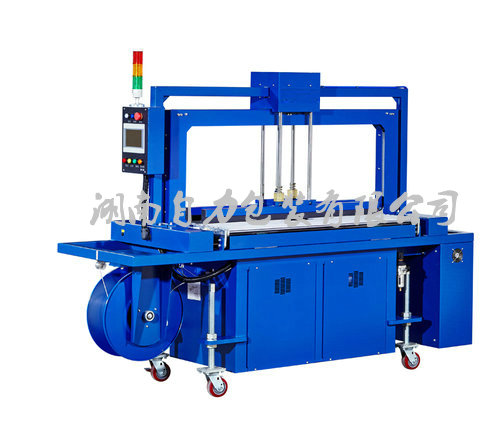 PP带全自动打包机 纸箱全自动打包机 该系列自动捆扎机是以聚乙烯料为捆扎料,主要用于商业,邮政,铁路,银行,食品,医药,书刊发行等行业的纸箱,木箱,纸包件,柳编箱,布包件的包装捆扎。在插入包装带后,机器能自动完成聚带,热合,切断,并出带的捆扎过程;且有自动停机之功能;其工作速度快,效率高,省时省力,捆扎质量高。 原理及特点:全自动捆扎机,不须人工插带,工作效率高,劳动强度低。打包紧力卓越,故障少,维修方便;?打包机零部件均由电脑数控机床精密加工;?打包动作柔和,耐用性卓越,打包功能完善;打包结束后电机马上停止,省电实用。 高速无人化加压打包机 控制系统:PCB 适用PP带宽:5mm或6mm、厚0.35-0.65mm 捆紧力:3-30KG 框架内尺寸:W1000MM*H500MM 电源电压:220V/50HZ 打包速度:30道/分钟 德国原装进口电机,有自动送带功能 高速无人化打包机 控制系统:PCB 适用PP带宽:5mm或6mm、厚0.35-0.65mm 捆紧力:3-30KG 框架内尺寸:W1000MM*H500MM 电源电压:220V/50HZ 打包速度:30道/分钟 德国原装进口电机,有自动送带功能
