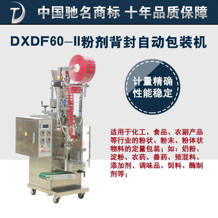 设备介绍: 该设备为转为胡椒粉、奶茶粉、木瓜粉的胡椒粉包装机,设备为自动设备,配备了PLC控制系统,能在微电脑的控制下自动完成包装工作。同一台定量包装机在5-5000g内通过电子秤键盘调整及更换不同规格的下料螺旋连续可调。 设备参数: 技术参数 电 源:AC380V 功 率:900W 包装精度:±1% 包装规格:5g-5000g 包装速度:1500-3000袋/小时 总重量:380kg 整机尺寸:1000×650×2000(mm) 设备特点: 1、本粉剂包装机是集机、电、光、仪于一体,单片机控制, 具有自动定量、自动充填 、自动调整计量误差等功能; 2、设备为螺旋下料设备,下料便捷适合于粉剂包装,并且采用了光控技术,更加利于粉体的包装工作; 3、采用步进电机及电子称量技术,工作更加迅速、精确 4、因物料比重和料位变化造成的误差可自动进行跟踪修正 5、光电开关控制,在人口套袋的之下,袋口更加干净,封口简单、与供料装置搭配,用户使用方便。 沈阳东泰机械成立于2008年,是一家专业的产称重式灌装机生产加工公司,拥有完整、科学的质量管理体系。诚信、实力和产品质量经过时间的考验,获得了业内的认可。公司总部位于山东济南,在武汉、沈阳、成都设有分公司,销售网络遍及全球。 公司拥有具备专业技术的员工队伍,为确保公司客户各个项目的顺利完成,特成立:工程项目部、自动化控制项目部、灌装设备与称重系统项目部,共三大项目部。对售前、售中、售后服务工作提供坚实有效的保障。 沈阳东泰 电话 024-85615360 Q Q 133011508 133011509 地址 沈阳市建设东路57号爱都国际B座 售后服务 产品一年包换,三年保修(自验收日计算) 保修期内因质量或者自然磨损而导致的零件更换由我方负责免费更换; 保修期内因质量或者自然磨损问题所导致的修理免工时费; 沈阳胡椒粉粉剂包装机/bzj2.asp 沈阳粉剂包装机/fjbzj/