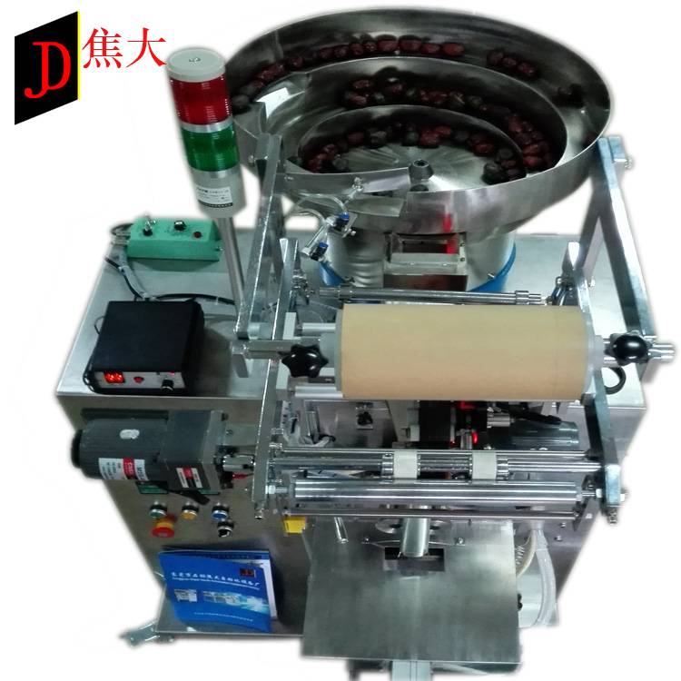 一:五金混合螺丝包装机基本参数 功能:制袋、打码、计数、填充、封口、包装、贴标、输送、选别、装箱等 型号: JD-2401 电压 :220(V) 功率:2.6(Kw) 包装膜宽:100-400(mm) 大制袋尺寸:40-200(mm) 包装速度: 1-40(包/分钟) 重量:260(kg) 外形尺寸:1300*800*1650(mm) 包装材料: 薄膜 包装类型 :定制木箱 包装袋封口形式:三边封或背封 自动化程度: 全自动 经营模式:厂家生产 根据顾客具体的物料选择优秀的上料机:链板上料机、磁力上料机、皮带上料机、Z型上料机等。 如附近有和顾客物料相似的我司老顾客,也可带着新顾客去老顾客那里看看包装机的实地使用情况,让新顾客进一步的了解我司包装机整体质量和售后服务情况! 全自动五金混合螺丝包装机主要特点: 1.采用日本三菱PLC可编程器控制,并设有中英文主机操作界面,从而使设备操作简单,调整方便,自动化程度高。 2.采用智能型温控仪双路控制横、纵封温度,从而使封口牢固、封密性好,袋型平整、精美、包装效率高。 3.制袋系统采用步进电机细分技术,自动跟踪,自动定位袋子的色标,轻松完成制袋的操作,调整、速度快。运行平稳、噪音低。 4.采用先进的智能光电系统和自动补偿功能,保证包装袋双面印刷图案的自动对版,提高包装材料使用率。 5.在额定范围内无极调整包装速度定位张口停机。 6.能自动完成制袋,计量,充填,封合,切断,技术,打印批号等工序。 7.采用容积法计量,对于密度均匀的被包装物料计量准确,符合国家计量标准。 三:螺丝包装机适用范围 适用于多种螺丝、螺钉、五金配件、塑胶件等产品包装,该机可带多个振动盘、可同时将多种不同的物料填充到包装袋内,客户也可选择性的用其中的一个、两个、三个或四个振动盘:广泛用于电工、电器、灯饰和五金建材制造工业附属安装螺丝的自动包装。 售后服务: 1.质量保证、振动盘也是本厂生产,大大减少了包装机的成本。 2.高质量的包装盒技校产品的耗损-有精确的包装保证;完美的包装外观-有独特、现金、成熟的技术保证;让客户的产品在短期内得到快速、精确、卫生的完美包装;控制系统的设计能满足您自动化的要求。 3.主机电器部分保修一年,易损件不在保修范围内;为了便于以后生产的需要,如果需要再次上门服务须书面通知,整机终身保养。 4.本厂为客户提供专业人员培训,技术咨询、售后维修等一条龙服务。