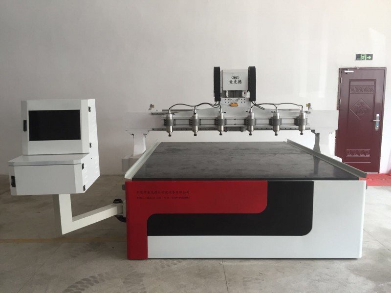 机型解读Model interptation Mkd-1820-E系列设备是一款包装材料雕刻设备,三轴配有防尘罩设计,优先防止加加工过程中水、粉尘、杂物等飞溅到轨道和其他传动件上,以免生锈和人员撞伤。 Mkd-1820-E series equipment is a packing material engraving equipment. The three axis is equipped with dust cover design. It is a priority to pvent the splashing of water, dust and sundries to track and other transmission parts during the processing, so as to avoid rust and personnel bruising. 性能特点Performance features 1. 钢架焊接震动时效及热处理加硬,经CNC平整加工,确保机床刚性耐用不变形; The steel frame is welded with vibration aging and heat treatment hardening, which is processed by CNC flat to ensure rigidity, durability and non-deformation of the machine tool 2. 进口高精度导轨、齿条,原厂驱动及电机,机器运行稳定、速度快、工作噪音小; imported high-pcision guide rail and rack, original factory drive and motor, stable operation, fast speed and low working noise 3. 采用品牌电器元器件、高柔性屏蔽拖链电缆线,使其抗干扰能力强、故障率极低。 use brand electrical components and high flexible shielded drag chain cable to make it strong anti-interference ability and low failure rate. 适用行业Apply to industry 包装材料雕刻机广泛应用于EVA、海绵、泡棉、高发泡、珍珠棉、等包装材料艺术品加工。 Packaging material engraving machine is widely used in EVA, sponge, foam, high foaming, pearl cotton, and other packaging materials. 技术参数Technical parameters 设备型号 Equipment model MKD-1820-E 工作行程(X、Y、Z) Work schedule (X, Y, Z) 1800*2030*180mm 平台尺寸 Platform size 1850*2500mm 空程速度 Idle speed 15000mm/min 加工速度 Processing speed 8000mm/min 主轴转速 Spindle speed 24000rpm 主轴功率 Spindle power 2.2KW*8个 重复定位精度 Repeated positioning accuracy ±0.15(300mm) 加工精度 The machining accuracy ±0.08(300mm) 出力轴 The output shaft 雷赛高速步进电机(可选伺服) 运动配置(龙门动) Sportsconfiguration (gantry movement) X、Y高精密斜齿,台湾上银25导轨(银泰) X, Y high pcision helical teeth, Taiwan HIWIN(PMI) 25 guide linear Z台湾TBI丝杆,台湾上银25导轨(银泰) Z Taiwan TBI ball screw, TaiwanHIWIN(PMI) 25 guide linear 工作电源 Working power supply AC-220V/380V±5% 50~60Hz 整机重量 whole machine weight 2500KG 外形尺寸 Overall dimensions 2500*2450*1680