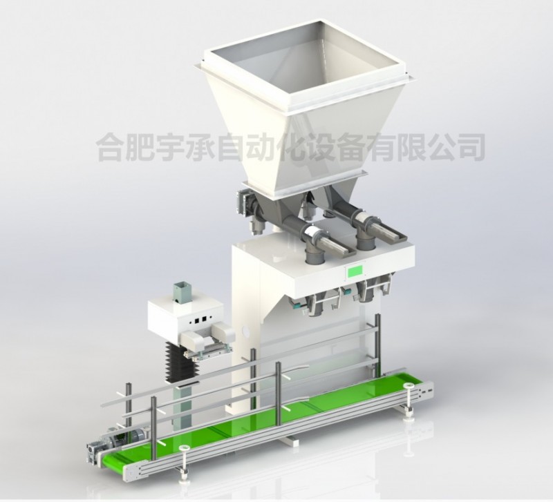 YC-WLC-5-25型定量包装机 1台 (1接触物料部分均为304不锈钢材料,秤体为201不锈钢、底座碳钢喷塑、自动供料装置、电子称重装置、气动夹袋装置、所有部分金属均为304不锈钢。 (2电子称重装置,称重传感器检测,数字设定与显示重量,计量速度快,精度高。 (3气动夹袋装置,人工套袋,气动夹袋,自动落袋。 (4有故障自检测功能,可自动检测快加、慢加、称重、稳定、夹袋、卸料、落袋每个动作的状态。 (5 螺杆供料系统工作时, 供料电机带动螺杆转动进行供料,快、慢两级加料。 (6主电机选用高精度伺服电机,同时螺旋前端含双格栅及气动封门装置,便于更好控制速度、精度的匹配。