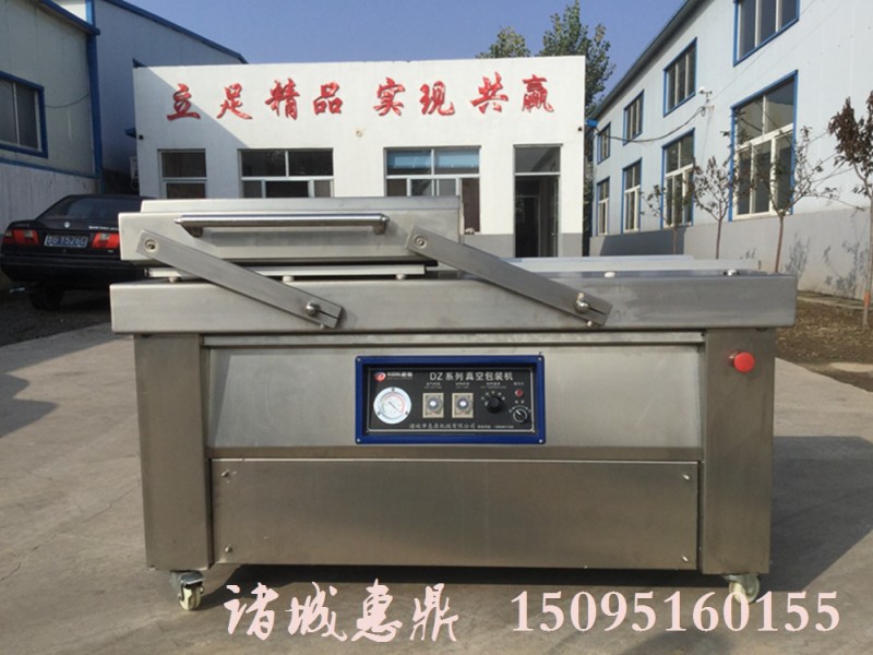 产品简介: DZ-600 双室真空包装机是可以交替工作,也可以两个真空室同时工作或只使用一个真空室,工作效率和用途在传统双室真空机的基础上有了较大的提高。采用微电脑控制系统,使各项工作程序更精确,性能更好。其结构精巧合理操作简捷,维修方便。只需按下真空室盖即可按设定的程序完成抽真空,充气(可选),封口,印字,冷却,排气的全过程。经抽真空包装后的物品可防止氧化,霉变,虫蛀,受潮以延长产品储存期限。可以根据客户的要求定制。 技术特点: 1制系统:电脑控制面板,有多种控制方式供客户选择。 2真空泵:严格的质检体系保证了真空机心脏的安全稳定的运转 3主体材料:真空机主体结构材料均为304不锈钢,保证了外观的美观、和在强腐蚀恶劣环境下使用时的防腐作用 4V形密封条:由高密度材料制作的V形真空室密封条,材料的耐压和耐磨性延长了密封条的使用寿命,减少更换次数,减低生产成本 5重型移动脚轮(带刹车):星火公司为机器配置的重型移动脚轮(带刹车)承重性好,使客户移动机器位置时更加轻松自如 6优质的有机玻璃真空盖,坚固透明,可使真空室内的包装物的包装过程和状况一览无余 适用范围: 适用于杂粮、鸡蛋、肉类、酱腌产品、水产、海产品、蔬菜、农副产品、果脯、粮食、豆制品、药材、电器等物品的抽真空包装。 技术参数: 型号 DZ-400-2S 机器尺寸(mm) 560 × 1050 × 935 真空室尺寸(mm) 450 × 460 ×140(90) 热封有效尺寸(mm) 430 × 8×2 真空泵(m3/h) 20×2 电机功率(kw) 0.9×2 电压(V) 110/220/380 频率(Hz) 50/60 工作循环(times/min) 2-3 净重(kg) 153 外箱尺寸(mm) 1110 × 590 × 970 公司介绍: 诸城市惠鼎机械有限责任公司是国内专业生产果蔬加工流水线、巴氏灭菌流水线、鲜食玉米深加工流水线、即食竹笋加工流水线,莲藕加工流水线、即食魔芋(素毛肚)加工流水线、洗袋流水线、酱菜加工流水线、海带加工流水线,食用菌深加工流水线、大姜清洗流水线、榨菜加工流水线、辣椒清洗流水线、真空包装机械行业的重点骨干企业。产品通过国家质量监督部、机械工业包装机械产品质量监测中心验证。 为了努力打造中国食品机械行业的知名品牌,从时间到生产的各个环节采用精准高效的质量控制方法,所有元件在装机前均经过严格的测试和筛选,关键元器件从德国、日本进口或定点生产。生产程序严格按ISO9001认证体系执行。在出厂前批次抽样检验,确保产品的稳定性和可靠性。 让您的产品拥有好的质量保证是本公司全体员工的共同心愿,真诚期待与您的合作