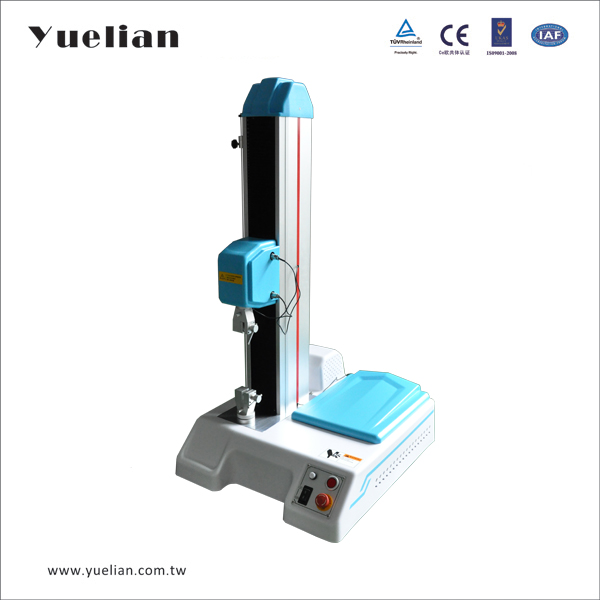 新款拉力试验机www.yuelian.com.tw 机台介绍 YL-S70电脑式材料试验机专门测试各种材料、成品、半成品的强度,选取各种夹具、冶具,适用于测定各种材料在拉伸、压缩、弯曲、剪切、撕裂、剥离、穿刺等状态下的力学性能及有关物理参数。可做拉伸、压缩、三点抗弯、四点抗弯、剪切、撕裂、剥离、成品鞋穿刺、纸箱持压、泡棉循环压缩、弹簧拉压及各种动静态循环测试等。 机台结构 交流伺服马达驱动,精密滚珠丝杆传动; 丝杆护罩采用铝型材挤压成型,表面喷砂、阳极亮银处理,工艺精美; 外壳选用高级ABS吸塑喷涂处理,经久耐用,美观大方; 上下行程微调开关; 快拆式接头,可轻松更换不同的功能夹具; 机台保护 超行程、超容量保护、紧急制动开关; 机台功能 强大的数据分析统计和曲线图形分析辅助工具,具备放大、缩小、平移、十字光标、取点等功能。多次历史测试数据可调入图形同时显示做对比分析。多达7个区间设置、40个手动取点、120个自动取点功能。具备大值、小值、平均值、去高低平均值、中位数、标准差、总体标准差、CPK值等多种统计功能。 测试曲线显示 测试过程中实时且可以同时显示力量-位移、力量-时间、位移-时间、应力-应变等曲线,可随意切换到想看的曲线画面; 自定义测试方法 具备定速度、定位移、定力量、定力量速率、定应力、定应力速率、定应变、定应变速率等各种控制模式,可实现复杂的多步嵌套循环控制.可设置自动返回、自动判断断裂、自动归零等功能。 传感器正反受力可切换; 技术参数 容量选择 10N、20N、50N、100N、200N、500N、1KN、2KN、5KN(可选双容量配制,并具备快速更换要求) 控制方式 全电脑控制方式,软件功能强大 力量单位 N、kN、gf、kgf、lbf、kP、tf(SI)、tf(long)等 长度单位 mm、cm、Inch、m、km、um等 应力单位 Pa、Kpa、Mpa、Gpa、KN/㎡、N/㎡等 力量分辨率 1/500,000 精度 0.1% 行程分辨率 1/500,000mm 采集速率 2000次/S 有效行程 450mm 速度范围 0.001~500mm/min(可定制) 测试空间 ?140mm 停机模式 过载停机、紧急停止键、试件破坏自动停机、上下限设定自动停机 机台动力 伺服马达驱动 机台尺寸 520×590×1061mm (宽×深×高) 机台净重 45KG 功率 400W 电源 220V 50~60HZ 机台配备 232连接线1条、软件1份 选购 夹具、电脑