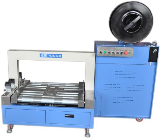 产品说明 HK850动力全自动打包机/捆扎机是以聚丙烯塑料袋为捆扎材料的动力全自动打包机/捆扎机。适合于各种行业、各种场合的包件打包与捆扎。本机配备全面动力滚筒,与流水线接驳,实现无人化双道或多道打包。 采用意大利,德国,日本等先进技术,性能稳定,适合连续繁重的打包工作。关键件由精密加工中心加工而成,使机械运行更柔顺,寿命更长久。 技术参数: 1、整机尺寸:(长*宽*高)1870*700*1580 2、工作台面高度:450+150mm 3、捆包物尺寸(标准机器):(长*宽*高)小250mm*250mm*30mm (宽*高)大700mm*600mm长度不限(可根据用户需求定做) 4、捆扎带宽度:12mm,13.5mm(标准型)、9mm,15mm可选 5、单道捆扎时间:≤2.5S 6、大捆扎紧力:≥700N 7、电源:380V/50HZ(标准型),220V/50Hz(可选) 8、总功率:0.85KVA 其他: 1、适于大件、重型及易泄漏物品的捆扎 2、外壳坚固,台面可承受达1000KG 3、速度2.5秒/道 4、重量:300kg 主要配置: 制动电机 台湾城邦 主/送退带/预送带电机 清华紫光 光电传感器 欧姆龙 接近开关 韩国AUTonICS 微动开关 台湾HIGHLY 中间继电器 日本OMRON 开关、按钮 天逸电器 加热头 采用直热式,经久耐用 切刀 采用特殊材料,高频淬火,耐磨实用 机芯 采用摆臂式免加油机构,机器整洁,清理维护方便