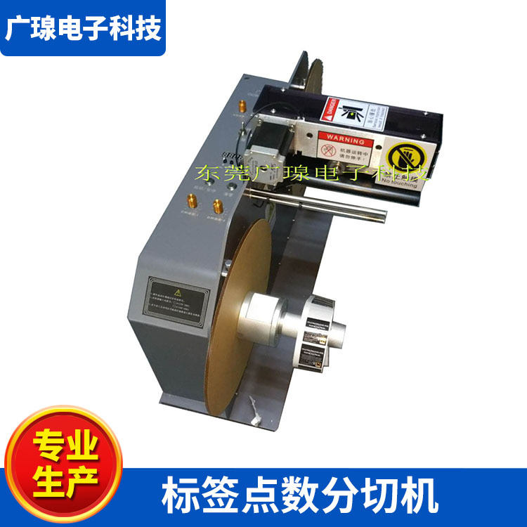 1. 产品介绍 首先欢迎广大客户使用我们的GCB-LB120DP标签点数机。标签点数机是由机械+智能电子控制系统组成。随着科技的发展,需要标签的产品越来越多,标签点数手工已经很难达到要求。GCB-LB120DP点数机计数全是自动进行,机上装有智能感应装置,每过一张标签时,自动记录数值,到达计数数值时自动剪切和打印。整个过程操作简单,大大提高了工作效率 2. 适用范围 广泛应用于食品、玩具、日化、电子、医药、五金、塑胶、印刷及所有要求贴标签或膜的产品行业,适用于条码标签、防伪标签、镭射标签、烫金贴纸、封装商标、玩具贴纸、生产日期等。 3. 技术指标 l 输入电压:AC180-264V/50-60Hz。 l 功率:20W。 l 计数范围:0-99999带记忆。 l 纸卷内径:75mm。 l 纸卷外径:300mm。 l 点数速度:标签长度60mm时,240张/分钟 l 适合大标签宽度:100mm l 重量:26kg。 l 产品尺寸(mm):长750*宽340*高590。 l 工作环境:温度-20-+60度,湿度10-85% u 电机锁杆:用于固定标签盘时锁紧电机轴。 u 扩展镙杆:用于固定标签。 u 光纤感应器:调节光纤感应强度。 u 启动/暂停按钮:点数/计数时启动和暂停按钮。 u 清零按钮:用于计数值清0 u 刀盒:用于剪切标签。 u 标签挡环:用于固定标签。 u 回转减速阶段速度控制:改变回转时减速阶段电机运行速度。 u 回转初阶段速度控制:改变回转时初阶段电机运行速度。 u 正反转切换开关:用于切换正反转。 u LED显示屏:用于显示计数值和功能参数值。 u 上翻按钮:数值参数往上递增。 u 下翻按钮:数值参数往下递减(设报警值时用做个/百/千/万/选择按钮)。 u 设置按钮:用于参数设置,长按3秒进入参数设置界面。 u 正转初阶段速度控制:改变初阶段电机运行速度。 u 打印机:打印点数的标签数量。 u 正转减速阶段速度控制:改变减速阶段电机运行速度。 u 电机正反转选择开关:切换电机正反转。 1. LED菜单说明 ? 按下SET键3秒进入功能设定界面: C---A:计数报警切断值设定 C---b:工作模式选择 C---C:减速阶段个数设置 C---d:打印剪切模式设置 C---E:计数倍数设定 按上下键可以选择不同的功能菜单,按下SET键,进入参数设定界面。 ? C---A表示计数报警切断值设定: 按下SET键进入设置。 XXXXX 数值范围1-99999 界面闪烁,按上下键调整计数值,按下左边的“下翻键”按钮分别可选择个位,十位、百位、千位、万位进行调整。按下中间的“上翻键”调整数值,确定后按下“SET键”,蜂鸣器提示一声响,完成设定。 ? C---b时:表示工作模式选择: b---1表示点数模式(到设定的值后,电机停止运行),0表示计数模式(只计数,启动后电机一直运行)。 界面闪烁,按下SET键确认模式选择,蜂鸣器提示一声响,完成设定。 ? C---C表示减速阶段个数设置: C--XX表示减速阶段个数,数值范围1-100。(电机减速阶段开始时间=设定的计数报警值-减速阶段个数,默认设定为5,具体可根据标签宽度来定)。 界面闪烁,按上下键可以调整减速值, 按下“SET键”确定,蜂鸣器提示一声响,完成设定。 ? C---d表示打印剪切模式设置: ? d---1:为自动模式模式(点数到自动剪切和打印)。 d---0:手动模式(按“ ”键剪切,按“ ”键打印)。 按“上下键”可以选择调整, 按下“SET键”确定,蜂鸣器提示一声响,完成设定。 ? C---E表示感应个数倍数设置: E---X: X数值范围1-10(默认为1)。 按“上下键”可以选择调整, 按下“SET键”确定,蜂鸣器提示一声响,完成设定。