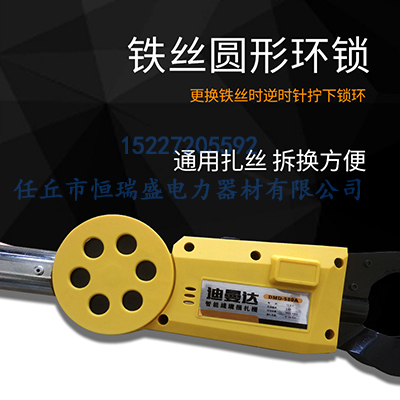 全自动无线遥控开关 线缆捆扎机是一种手持式免登高线缆快速附挂工具,内部放置控制器等电路元件,能自动完成线缆附挂捆扎的所有步骤,可广泛应用于通信工程领域高空作业, 用于代替传统人工附挂捆扎线缆。该机器主要由机体,线盘,电池,遥控开关,手持杆五大部分组成。 标准配置:机身,一副六米附挂杆,两个遥控器,二盘镀锌铁丝,两块电池,一个充电器。 技术参数 电池:3600毫安/组,充满电一块电池可工作800次以上,大概附挂3公里以上。 附挂杆:可绝缘10KV,材质由绝缘玻璃钢环氧管构成,1.2米/根。 覆膜铁丝:每盘110米,一次出丝300-500毫米,可附挂2KM。 遥控开关:遥控距离空旷20米,可隔墙使用。 包装盒尺寸:62mm*30mm*12mm, 使用方法: 1、取出电池绝缘杆部分,将锂电池进行充电,绿灯亮起意为充满状态,充电时间大约90分钟左右,充满后对接主机,打开主机开关,此时蜂鸣器会发出滴的提示音,表示机器已经通电。 2、旋转并取下机身中部固定扎线盘的六孔圆盖,然后将我公司定制的丝盘装入制定位置。 3、取出一盘扎线用手拉直10公分后,插入机身长方形进线孔,向前输送至底部,将扎线装入,并把六孔圆盖旋转至紧(如铁丝不拉直,容易造成卡丝,铁丝无法进入规定轨道)。 4、 开机,用遥控将扎线引出测试,铁丝按规定轨道送出,确保线盘安装成功 。警告:机器工作时,手不能触扎丝走道以防造成人身伤害。 5、取出高度合适的绝缘杆与电池绝缘杆进行对接 6、举起机身选择合适的线路进行施工 7、把需要捆绑的线缆,全部放入捆绑凹槽。 8、施工人员按下遥控开关,附挂机自动吐丝、铰紧、切断。 9、操作一次之后再按第二次,不要连续操作多次,以免两次铁丝缠绕一起。 10、长时间不工作会听到机器有连续嘀嘀嘀的响声后,请重启电源,机器恢复工作状态。 11、扎丝走道滑块调节,先用工具松开两颗螺丝,然后调解到适当位置,顺时针方向逐渐减少出丝形成的圆的直径,反之则加大。出丝成形圈直径在83-85为)。 12、扭矩调节:使用中如发现有扎不紧或易断现象,可以调整扭矩调节按钮,扎不紧按“ ”号一下即扭矩增加一档(出厂设置为10档),蜂鸣器会发出档位对称的叫声,如10档会连续响十下,以此类推。过紧(易断)调节“-”号,调整到合适为止。