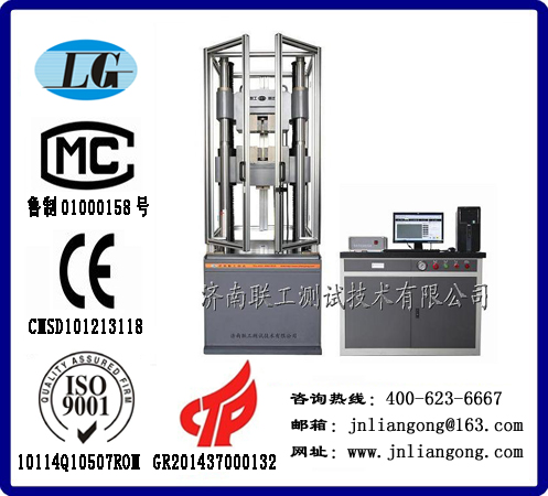 一、设备型号名称 WAW-4605-E微机控制电液伺服万能试验机 二、设备用途 本试验机,主要用于金属、非金属的拉伸、压缩、弯曲和剪切试验。试验操作和数据处理符合国标GB/T 228-2010《金属材料 室温拉伸试验方法》的要求,如果改变结构形式及更换相关零件,可同时满足ASTM,ISO等国际相关标准的要求。本机适用于冶金、建筑、轻工、航空、航天、材料、大专院校、科研单位等领域。 三、主要技术参数 1、大试验力: 600kN 2、精度等级: 0.5级 3、立柱数: 6柱 4、试验空间: 双空间(上拉下压) 5、夹紧方式: 液压夹紧 6、试验力测量范围: 2%~100%FS 7、试验力示值误差: ≤±0.5% 8、试验力分辨力: 1/300000 9、试验力采集频率: 1000Hz 10、变形测量范围: 1%~100%FS(全程不分档) 11、变形示值误差: ≤±1% 12、变形分辨力: 1/300000 13、变形采集频率: 1000Hz 14、位移示值误差: ≤±1% 15、位移分辨率: 0.01mm 16、位移行程范围: 250mm 17、活塞移动速度范围: 0.01~100mm/min 18、大拉伸试验空间: 820mm 19、两侧立柱间距: 545mm 20、大压缩试验空间: 720mm 21、安全防护: 过载、过流、过压、欠压、过速、限位 22、外形尺寸(长×宽×高) 主机 (898×764×2400)mm 油源 (920×720×1820)mm 23、整机重量: 约2900kg 24、电 源: 380V,50Hz,2.5kW