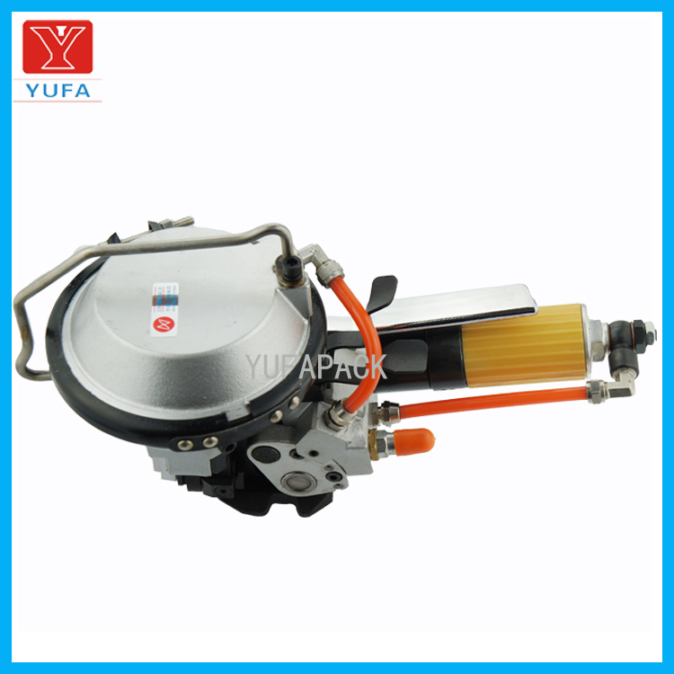 产品名称: A480气动组合式钢带打包机 产品优势: 1、重量轻、操作简便,安全可靠; 2、捆扎迅速、牢固、劳动强度低且捆扎效率高; 3、只需一名操作人员便能完成捆扎钢带的抽紧、锁扣、剪断等动作; 产品特点: A480气动钢带打包机拉紧、咬扣、切带一个机器完成,操作简单方便双按键操作,分别控制拉紧及咬扣,使打包动作准确使用密合式单咬扣连接机器重量轻,可手提操作或悬挂使用推扣式气动束紧,适用于管状物及不规则物体包装适用于各行业产品之包装,尤其是卷状物或不规则物体,如卷板、卷筒纸、钢管等 技术参数: 产品名称:A480 KZ-19/16型 气动钢带打包机 锁扣部分抗拉强度:≥6.3KN 拉紧力:≥4.9KN/0.6Mpa 钢带拉紧速度:5.5m/min 使用钢带宽度:13mm、16mm、19mm(选其一) 使用钢带厚度: (0.38~0.8)mm 使用空气压力:0.42~0.6Mpa 捆带材质:钢带 整机重量:5kg