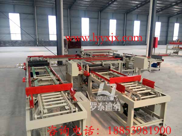 本产品是吊顶石膏板包边专用设备。 用途和特点 本设备是将吊顶石膏板(PVC贴面石膏板)侧面粘贴BOPP胶带包边,用于提高防潮效果。 适用规格在595---603mm之间正方形PVC石膏板。 独特待包边存储装置一次可放置多块石膏板,电器采用PLC控制。劳动强度低、操作简单。本设备生产速度快产量高、价格低廉。设备适用于小型覆膜板厂投资。 全自动封边机采用PLC电控装置,气缸调节,代替了繁琐的手工封边。工艺流程:上板→毛刷除尘→纵向封边→横向输送→横向封边→出板。使用光电开关,自动感应装置,收到信号后,自动将板材输送,封边到出板。支架采用优质钢材制成,输送辊使用不锈钢辊,机头进板和出板上下均采用橡胶辊输送,上下两根均带有动力,使板材运行更稳定,压力可根据板材的厚度自行调节,封边完成后,成品板边上无多余胶带,即美观又不浪费材料。速度快,效率高,节约大量人力,物力,是目前先进的天花板封边设备。 全自动pvc饰面石膏天花板包边机(天花板机械)采用新工艺设计制造,完全替代手工封边。生产效率高,封边工艺优秀。每小时包边可达1900-2000片,适合大量投产的天花板厂家。可单独使用,也可链接到生产线上进行流水生产,大大节省了厂家的人力投入。适合劳动力成本较高的地区使用
