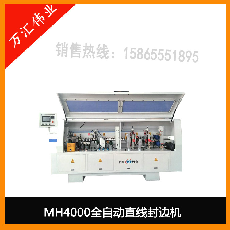 万汇伟业封边机的简单介绍: 封边机的加工组件主要有:预热、涂胶、、齐头、粗修、精修、仿形跟踪、刮边、抛光、开槽。主要用于板式家具的板材封边。其特点是自动化、高效率、高精度和美观度。已经在国内的板式家具生产企业得到广泛的应用。 封边作业是板式家具制造过程中的一道重要工序.封边质量的好坏直接影响产品的质量、价格和档次.通过封边,可以很好地改善家具的外观质量,避免家具在运输和使用过程中边角部损坏、贴面层被掀起或剥落,同时可起到防水、封闭有害气体的释放和减少变形等作用,而且还能美化家具、愉悦心情.板式家具生产企业使用的原料主要是刨花板、中密度板及其它人造板,所选用的封边条主要有PVC、聚脂、木条等.不同材料和规格的封边条使用不同的封边设备.如今家具生产企业所使用的封边机,主要有手动直曲线封边机和全自动直线封边机两种.手动封边机结构较简单,其安装、使用及维护相对较容易