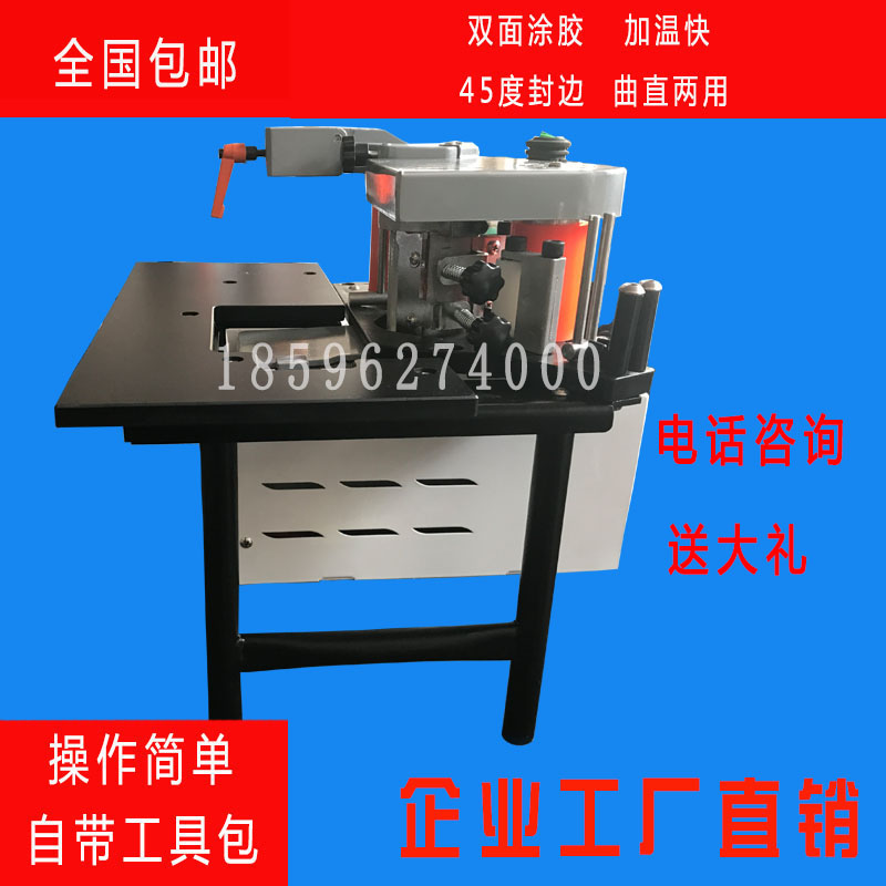曲直线双面涂胶木工封边机,在吸取了国内外手动封边机优点的基础上,再结合多年制造木工机械经验,研制出来的手动封边机,不仅操作方便,而且结构合理。适合各种形状家具的封边作业。 性能特点: 手动封边机采用自动控制,封边作业范围大,可保证热熔胶不糊不漏,适用于各种板材的直曲线封边,体积小,重量轻。功能超越普通进口直线封边机,是 早进入中国市场的封边机之一。适合各家具、橱柜、教具厂使用等。 用途和使用范围: 手动封边机采用国外技术,结构为先进的下置式胶盒,此结构用胶轴带胶,涂胶均匀,可以选择板材与封带双面涂胶,手工送料。可对板材侧面曲线、直线封边。用于家具加工,橱柜加工,室内装饰板封边等诸多方面,价格低廉,应用广泛。