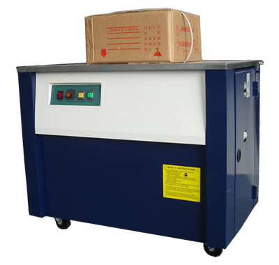 设备名称:PP带半自动打包机 设备型号:sk-1(高台) 设备简介 打包机又称捆包机或捆扎机,是使用捆扎带缠绕产品或包装件,然后收紧并将两端通过热效应熔融或使用包扣等材料连接的机器。打包机的功用是使塑料带能紧贴于被捆扎包件表面,保证包件在运输、贮存中不因捆扎不牢而散落,同时还应捆扎整齐美观。广泛用于家电、五金、塑胶、电子、食品、医药、轻纺、商场、邮政、书刊发行等行业的纸箱、木箱、柳编箱、纸包件、布包件的包装捆扎。在插入机用PP带后,机器能自动完成收紧、粘合、切断、出带的整套捆扎过程。 设备特点 适应性强:不需要更换任何零件,就可以适用于6~15mm的PP带。 效率更高:每捆一道仅需要1.5秒。 瞬间加热:开机后5秒钟即进入优秀捆包状态。 安全性好:速热系统热熔设计,仅1V低电压。 省电实用:设有自动停机装置,超过60秒不再操作时,马达会自动停转,进入待机状态。底部装有脚轮方便移动设备。 运转稳定:电磁离合,快速平稳;连轴式传动,速率快,噪声低,磨损少,故障率低。 技术参数 电源:220V 50HZ 功率:250W 捆包速度:1.5米/秒 大捆包物:不限 紧缩力范围:6—60KG PP带宽度:6—15mm PP带厚度:0.5—0.8mm 机器重量:70KG 整机尺寸:900*570*730mm 高台打包机 新操作系统,自动停机装置,更显卓越品质。配合双支撑加厚的机壳,承重能力更强。进口独立温控,设外置式旋钮,温度可调节,操作更方便,更快捷。全新改进机芯,故障更低,热熔、焊接、拉紧、切带一步到位,质量更加稳定。