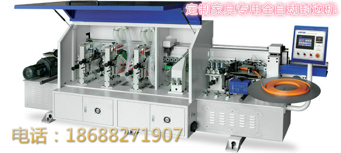 参数/名称 G105A全自动触屏封边机 设备功能 涂胶贴边,前后齐头,粗修,精修,刮边,抛光; 整机尺寸 4800mm*1000mm*1600mm 显示屏 台湾台达DV_PBO7S410电脑触摸屏 变频器 台湾台达FST_500_4RO_T4变频器 PLC 台湾台达DVP32ECOOR3 板料厚度 10-60mm 板料宽度 ≥60mm 封边带宽度 12-65mm 工件输送速度 18-22m/分 总功率 10kw 工作电压 AC380V/50HZ