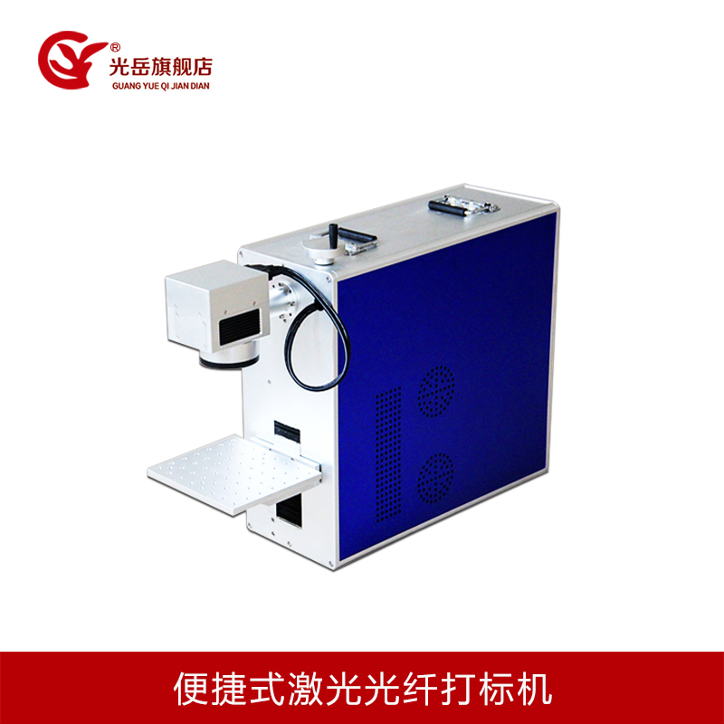 便捷式全自动激光光纤打标机,便捷耐用低耗高效,无光学污染,无功率耦合损失,全风冷设计,控制精度高,寿命长免维护。便捷式激光光纤打标机采用全封闭免维护激光光学系统,不需调整即装即用;采用原装进口射频金属激光器,光学质量好,寿命长;有高精度高速的打标性能,标记清晰,永久牢固。 适用于金属材料和部分非金属材料,如金、银、铜、铝、钢、铁、亚克力、塑料、PVC、纸张、双色板、透光按键等材料的打标标刻。光岳品质,价格美丽,光岳欢迎您的咨询订购。 适合行业:塑料透光按键、IC芯片、数码产品部件、精密机械、珠宝首饰、洁具、量具刃具、钟表眼镜、电工电气、电子原器件、五金饰品、五金工具、手机通件汽摩配件、塑胶制品、医疗器械、建材管材等高精度产品标识。 ◣ 技术参数◥ 激光功率:10W/20W 主机系统尺寸:500*500*500mm 激光波长:1064NM 供电电源:单相交流90-260V/50 HZ-60HZ 光束质量:<2 用电功率:<160W 激光重复频率:20KHZ-100KHZ 外形尺寸:750*555*210mm 打标范围:110*110mm/150*150mm 整机重量:40-45KG 雕刻深度:≤0.2mm 聚焦光点直径:<0.01mm 小线宽:0.012mm 打标速度:12000mm/s 小字符:0.15mm 打标区域:>800个标准字符/秒 重复精度:±0.003mm 光纤激光器寿命:>10万小时 电流需求:220V/单相/50HZ/4A 计算机操作系统:WIN98/WIN2000/XP 整机耗电:500W 冷却方式:内置风冷
