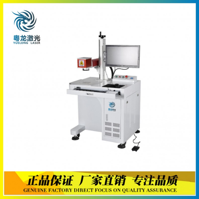激光打标加工原理: 激光打标是利用光纤激光器为介质,使之产生高能量激光束,当激光作用于工件材质的表面时,根据电脑图档的指令,工件表层材质瞬间气化,显露出表面以下的材质。激光打标后,加工部件的表面会产生物理和化学变化,从而达到用户进行图像、文字、数字、线条的雕刻的要求。 机型特点: 1.采用第三代固体光纤激光器,电光转换效率高达60%,优异的光束质量M2<1.4 2.采用高速振镜扫描头。标记速度飞快,是普通YAG及DP半导体打标机的4倍以上. 3.全风冷、无耗材、五年免维护、使用成本低廉。省电节能,整机功率仅500W。比同功率的YAG和半导体激光打标机每年可节约电费 2万元。 4.体积小巧,方便摆放。 应用行业: 广泛应用于电子学分离元器件、集成电路(IC)、电工电路、手机通讯、五金制品、刀具厨具、工具配件、精密器械、眼镜钟表、计算机键盘、首饰饰品、汽车配件、塑胶按钮、水暖配件、卫生洁具、PVC管材、医疗器械、包装瓶罐等。 应用材料 金属及多种非金属材料,高硬合金、氧化物、电镀、镀膜、ABS、环氧树脂、油墨、工程塑料等,特别适合一些要求更精细、精度更高和对光滑度要求较高的领域. 产品优势: ?光束质量高:分辨率1微米,是传统产品的10倍以上。 ?耗电量低:10万小时(灯泵浦YAG在几百小时左右,半导体在10000小时左右)。 ?速度快:800标准字符/秒,是传统产品的3~5倍以上。 光纤激光打标机的技术参数 型号 Model YLMF-20 功率 Power 20W 激光波长 Wavelength 1064nm 1064nm 光束质量 Beam quality M2 <1.5 M2 <1.5 激光输出功率 Output power 10%~100%连续可调(continuously to be adjusted) 10%~100%连续可 调(continuously to be adjusted) 激光输出频率 Output frequency 20KHz~100KHz连续可调(continuously to be adjusted) 20KHz~100KHz连续可调(continuously to be adjusted) 功率稳定性(8h)Power stability(8h) <±1%rms <±1%rms 聚焦光点直径Focus spot diameter <0.01mm <0.01mm 标记类型Marking type 动态标记/静态标记 Dynamic mark/static mark 动态标记/静态标记 Dynamic mark/static mark 标刻范围Carving size 150mm×150mm 150mm×150mm 选配范围Matching size 50mm×50mm 100mm×100mm 200mm×200mm 300mm300mm 标刻深度Carving depth ≤1.2mm ≤1.2mm 标刻速度Carving speed 800 standard characters/second 800 standard characters/second 小线宽Minimum line width 0.012mm 0.012mm 小字符Minimum character 0.15mm 0.15mm 重复精度Repeated accuracy ±0.003mm ±0.003mm 激光器 Laser module 国产Made in China 系统运行环境System operation environment WindowsXP/2000/98 WindowsXP/2000/98 冷却方式 Cooling mode 风冷 Air cooling 风冷Air cooling 运行环境温度Temperature of operation environment 15℃~35℃ 15℃~35℃ 电力需求 Power requirement 220V/ single phase /50Hz/<400W 220V/ single phase /50Hz/<450W 激光器寿命Life-span of laser module 100000 Hrs 100000 Hrs 在佛山很多设备公司都采用了粤龙激光科技有限公司的激光设备!