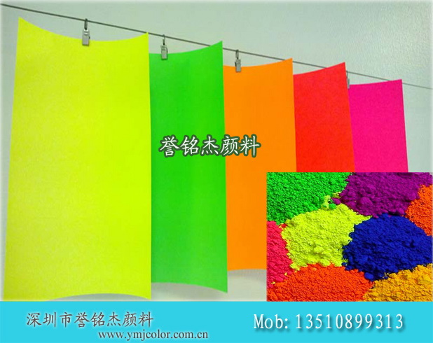 纸制品涂料用荧光粉 荧光纸用彩色荧光颜料 食品包装材料用荧光颜料 荧光颜料与一般颜料不同,它可将吸收的部分光(包括紫外线)转变成波长更长的且与正常反射光色调相近的光---荧光,使荧光颜料的颜色特别明亮和鲜艳。 誉铭杰荧光颜料可分为热塑型、溶剂型、水溶性三大系列。 热塑型荧光颜料有:低温耐(180℃以下)、高温段(200℃-250℃)、极高温耐(260-300℃),塑料着色,适应各种塑料加工工艺,使产品具有强烈的荧光效果。较高的着色力、热、光稳定性、良好的兼容性和极佳的分散性。 溶剂型主要应用在涂料、油墨,它具有细而匀的粒径和饱满、亮丽、纯正的色相,具有耐溶济性,抗渗色性和提供良好的遮盖力。 水溶性可应用于水性和各种非极性溶剂体系。如印染色浆、水性油墨,使产品具有极好的成膜性,高着色力和高光泽度等特点。 产品特性:耐温热塑型荧光颜料,适用各种塑料产品:聚乙稀、聚丙稀、聚苯乙烯等。选用纯净、透明的塑料则会达到优秀鲜艳的色彩。溶剂型和水溶性荧光颜料,可耐重芳烃类有机溶剂,不耐低分子醇、酮、酯等有机极性溶剂。 誉铭杰荧光颜料产品颜色:大红、桃红、粉红、玫瑰红、紫红、橙红、橙色、柠檬黄、绿色、蓝色、紫色、绿色、白色、橙黄色等。 产品指标:粒径:平均3.5um 大≤10um 软化点:135℃ 分解温度:190℃ 吸油量:≤50% 纯度:100%纯度无任何填充料 着色力:≥95 荧光颜料产品用途:涂料、油墨、塑料、薄膜、皮革、特种纸、印花浆、印刷、纺织品、玩具等。