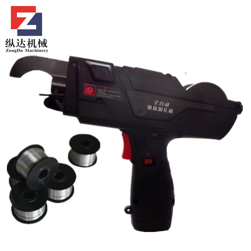 钢筋捆扎机 建筑用钢筋捆扎机 ZD-34D钢筋捆扎机 手持自动钢筋捆扎 纵达钢筋捆扎机是一种钢筋绑扎的手持机器其外形美观、实用,是一种手持式电池类钢筋快速捆扎工具。它是一种智能化工具,内置微控制器,能自动完成钢筋捆扎所有步骤,广泛用于?建筑工地、大型桥梁、道路、铁路建设、隧道建设等大型工程,完全可以代替人工捆扎钢筋。其特点为快速方便、安全可靠、操作简单、且大大降低了劳动强度!是目前工地捆扎?钢筋可以选择]工具! 型号:ZD-34D 尺寸:280mm*68mm*198mm 净重:990g 电池型号:锂离子电池 电池充电时间:快充20分钟,慢充1.5小时 打结一次所需时间:0.8秒 每次充电可打结数:1000次 每套机器配送电池数:1个或可选配多个 额定电压:10.8伏电压 线盘铁丝直径:0.8mm 每套机器配送充电器数:1个 适用钢筋捆扎范围:8mm-34mm 打结耗铁丝长度:40mm及以上