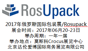 2017年俄罗斯莫斯科国际包装展览会/俄罗斯包装展/俄罗斯包装机械展/俄罗斯包装材料展/莫斯科包装展/俄罗斯食品包装机械展 2017年俄罗斯国际包装展/Rosupack 展会时间:2017年06月20-23日 举办周期:一年一届 举办地点:莫斯科Crocus展览中心 官方一级代理:北京达伦爱博国际商务展览有限公司 展会介绍 俄罗斯国际包装展览会(ROSUPACK)始于1996年,是俄罗斯、独联体地区以及东欧地区zui大的国际包装行业展览会,也是全球着名的包装展览会之一。该展已经赢得了良好的国际声誉,每年都吸引了数万名来自俄罗斯和国际的包装专业人士。它不仅是一个全球业内人士展出自己产品的盛会,而且是包装工业的形象展示。该展会是全球着名的包装展览会之一,也是俄罗斯,CIS地区和东欧国家zui大的包装展览会。因其对俄罗斯经济和外贸发展的贡献,该展会被誉为CIS和波罗的海UEF(国际展览协会)的代表。 市场分析 俄罗斯包装行业年增长速度都在10%以上,俄罗斯包装机械市场供不应求。据统计,俄罗斯包装机械市场容量为每年50亿至70亿美元。其中,俄罗斯制造商约占20%,主要生产半自动化的设备,目前尚未有能力满足俄罗斯包装行业的整体需求。近年来,俄罗斯调整机械、发展生产日趋成为经济生活的主流。塑料加工机械、印刷机械、食品加工机械、包装机械以及其它轻工机械设备的市场日趋升温,这些设备俄罗斯本国的生产供应能力非常薄弱,因此,俄罗斯食品、饮料、医药、化妆品、纯化工产品以及其他行业中不仅包装设备、包装容器需要大量进口,包装材料也需要进口。俄罗斯包装设备需求市场商机无限,这给中国包装企业带来了极好的对俄贸易发展机会。 据俄罗斯海关统计,2012年中俄双边贸易额为750.9亿美元,增长3.8%。其中,俄罗斯对中国出口240.5亿美元,下降10.5%;自中国进口510.4亿美元,增长12.3%。俄中贸易中,俄方逆差269.9亿美元,增长45.3%,中国为俄第四大出口市场和第二大进口来源地。 展品范围: 包装机械及配件:食品包装机械、真空包装机、糊盒机、制袋机、复膜机、涂布机、填充、灌装、封口、封箱、贴标机械、捆扎机、打包机、缠绕设备、喷码机、打码机、杯、盒、袋、桶、罐、瓶、盖、制造机械、日化用品包装机械、塑料软包装设备、药品包装机械、塑料机械、各种模切刀具配件等; 瓦楞蜂窝纸板设备、纸箱机械、纸盒、纸带、纸浆等; 包装材料:共挤复合、拉伸吹膜、发泡片材、纸板纸筒、铝箔铝材、胶粘带、热熔胶加工机械、塑料包装材料、金属装材料、食品包装材料、药品包装材料、绿色环保包装材料等; 包装容器及包装制品:塑料包装容器、金属包装容器、玻璃包装容器、集装袋、编织袋、塑料袋等绿色环保包装技术、包装防伪科技、包装设计、包装工艺、包装出版媒体等。 中国组团单位:北京达伦爱博国际商务展览有限公司 联系人:张文静 手机: 电话:010-83869663 传真:010-83883512 Email:2733171961@qq.com QQ : 2733171961 网址:www.dalunaibo.com